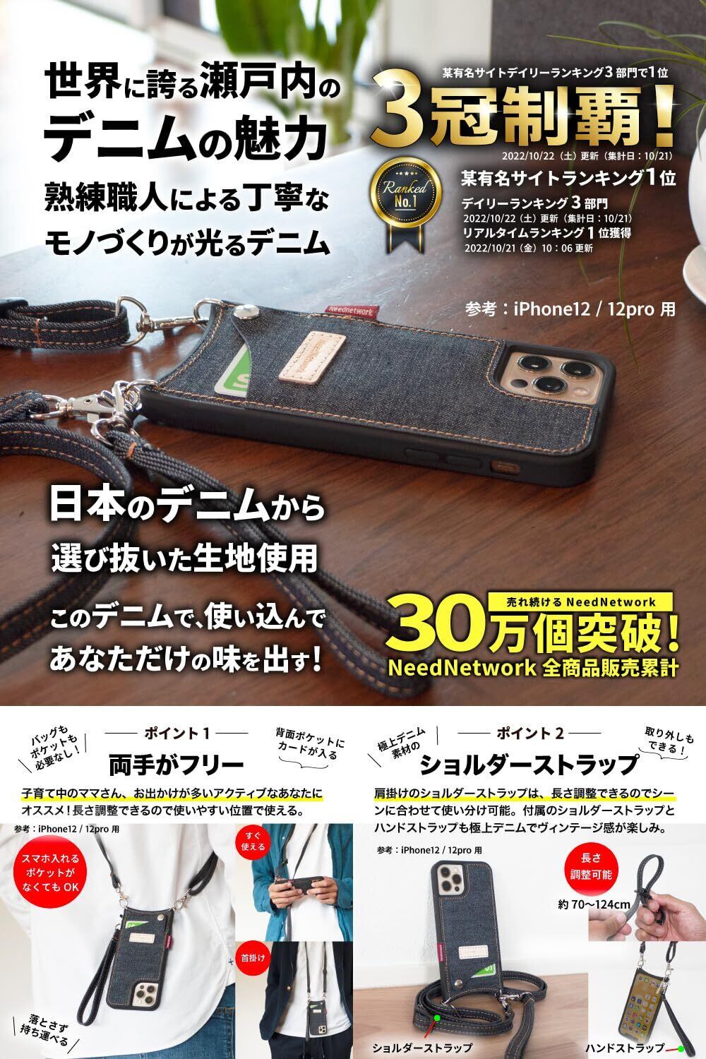 [ニードネットワーク] 日本が誇るデニム iPhone16 用 スマホ ケース ショルダー ショルダー付き カード入れ ショルダータイプ スマホショルダー スマホショルダーストラップ