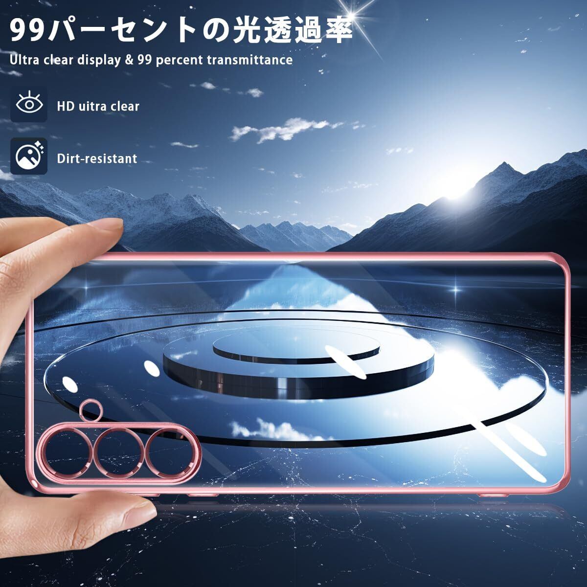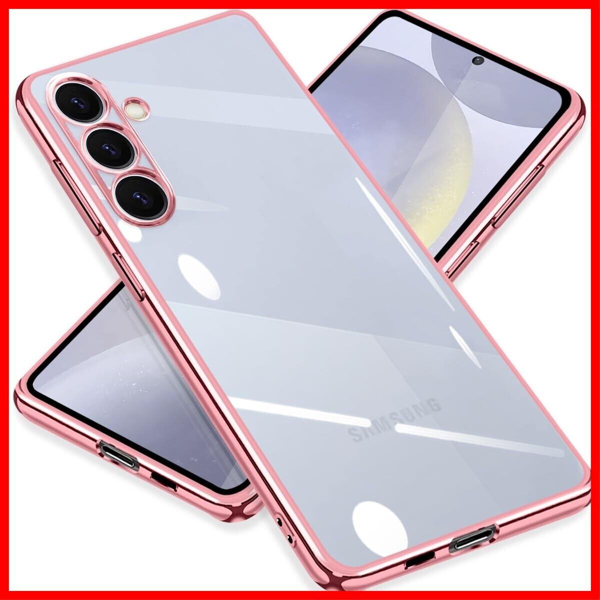 ZHUAZHULE Galaxy S24 5G ケース クリア ギャラクシー スマホケース メッキ加工 耐衝撃 カバー 透明 TPU レンズ保護 ストラップホール付き 薄型 黄変防止 擦り傷防止 人気 (ローズゴールド)