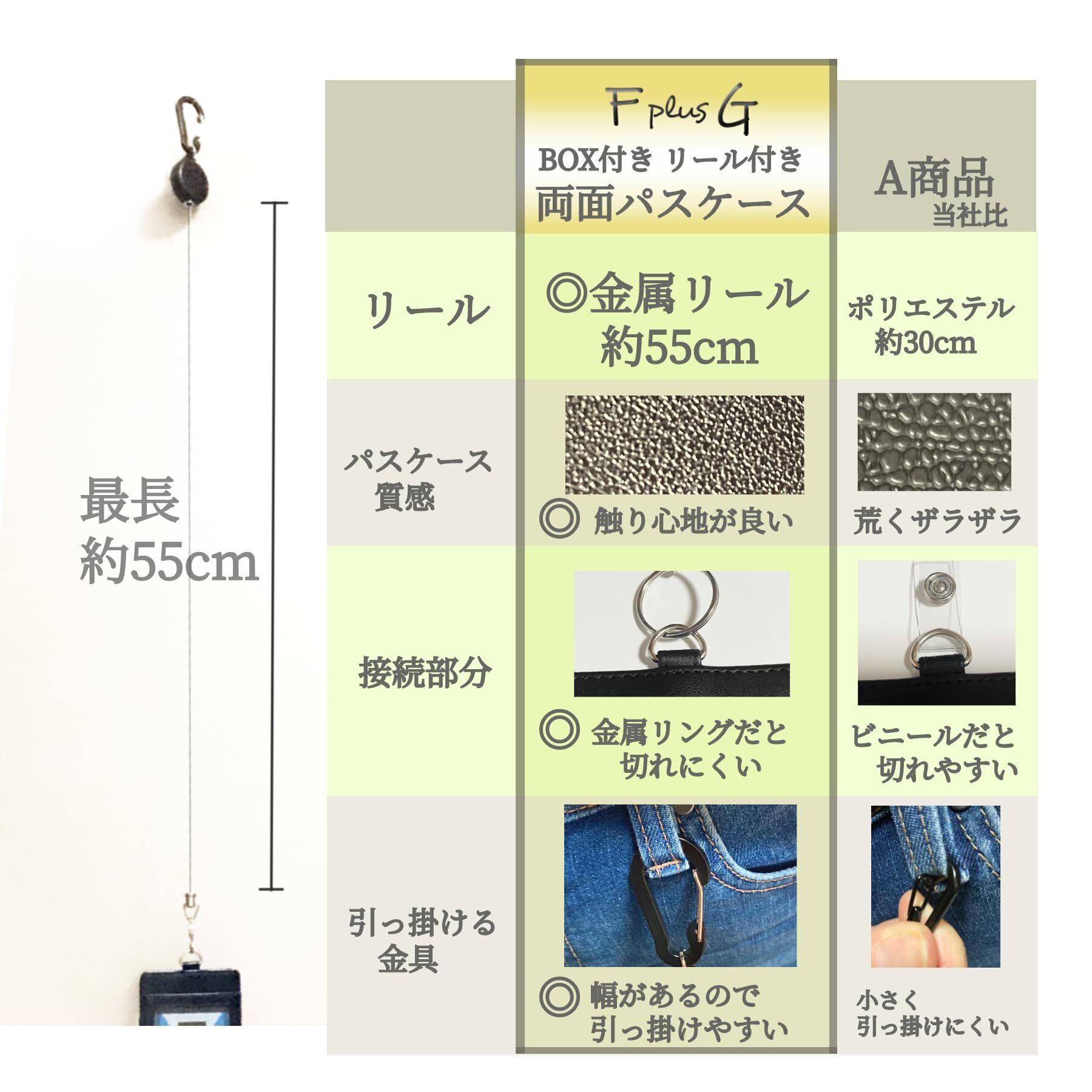 F plus G パスケース メンズ 定期入れ 伸びる IDカードホルダー リール付き カード キーホルダー IDカードケース 両面 通勤 通学 社員証 身分証明書 免許証 PUレザー カード入れ ギフト リール (縦型ブラック) | hananoki
