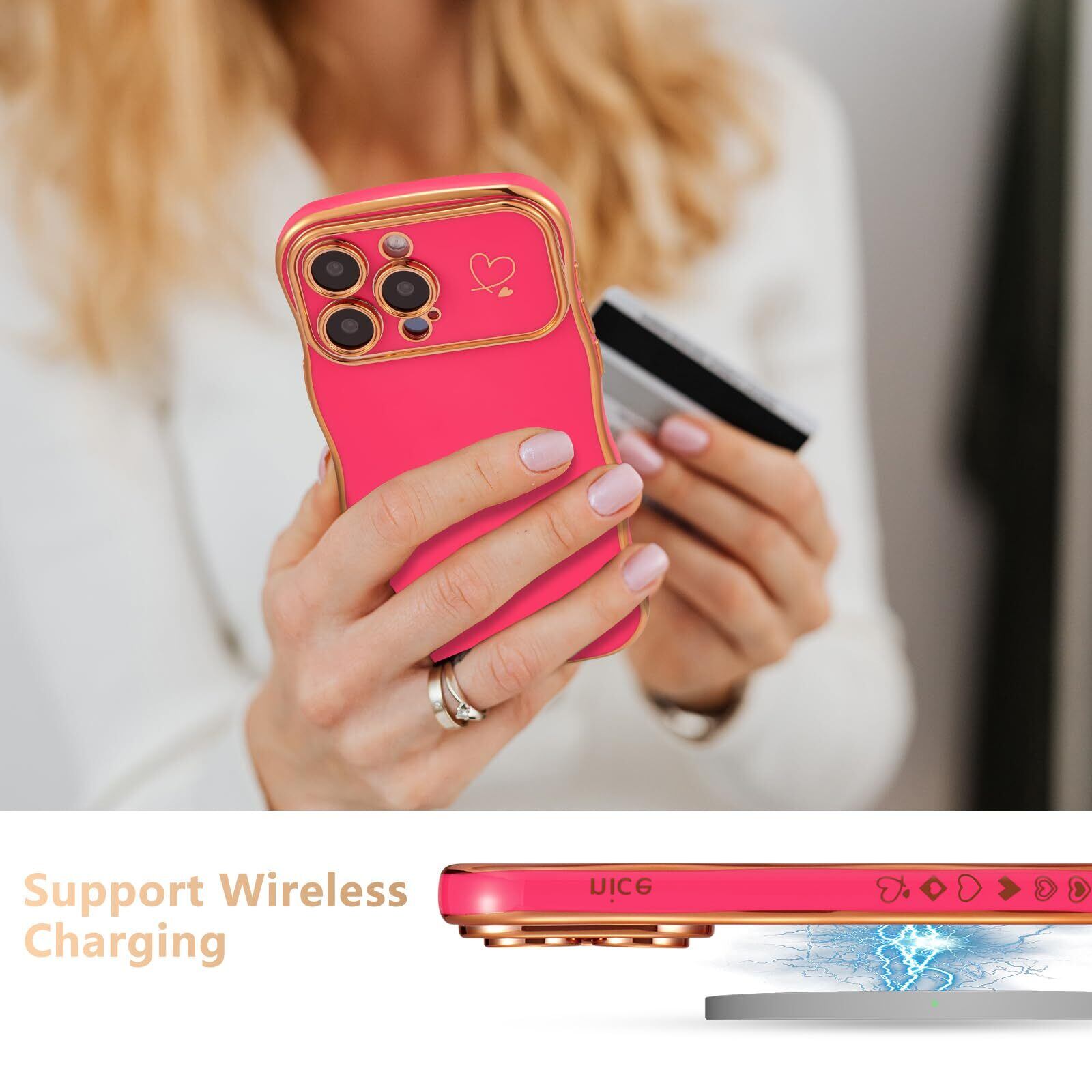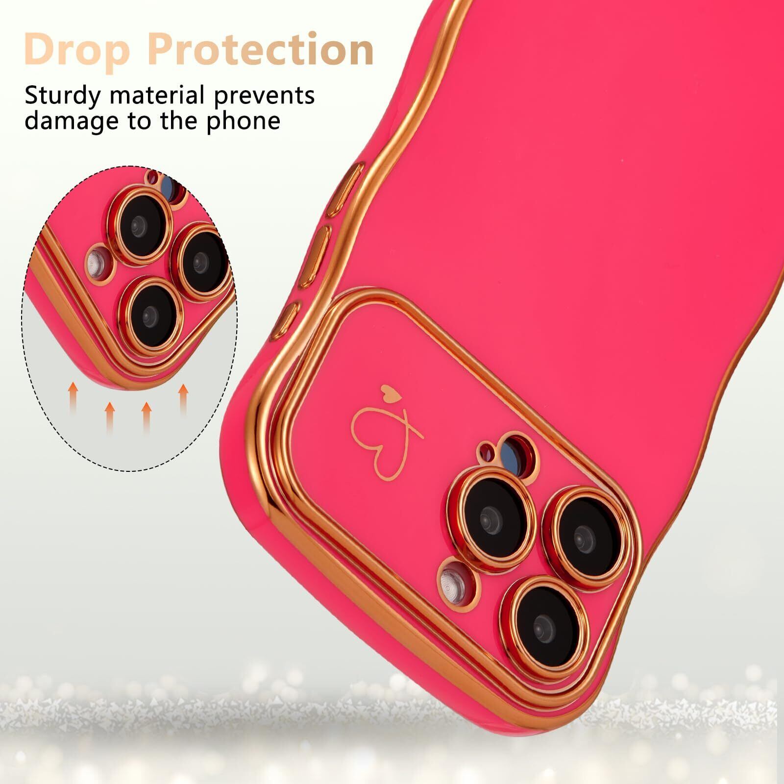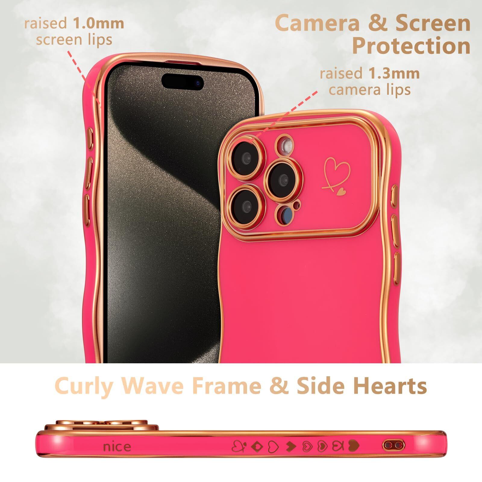 ZTOFERA iPhone 15 Pro Max 用 ハートケース 人気 おしゃれ iPhone 15 Pro Max 波型ケース 柔軟な TPU シリコン ウェーブ デザイン スマホケース メッキ加工 ソフト 軽量 耐衝撃 韓国 可愛い アイフォン 15 Pro Max ケース 女子 女性 携帯電話カバー ワイヤレス充電対応 (ホットピンク) | hananoki