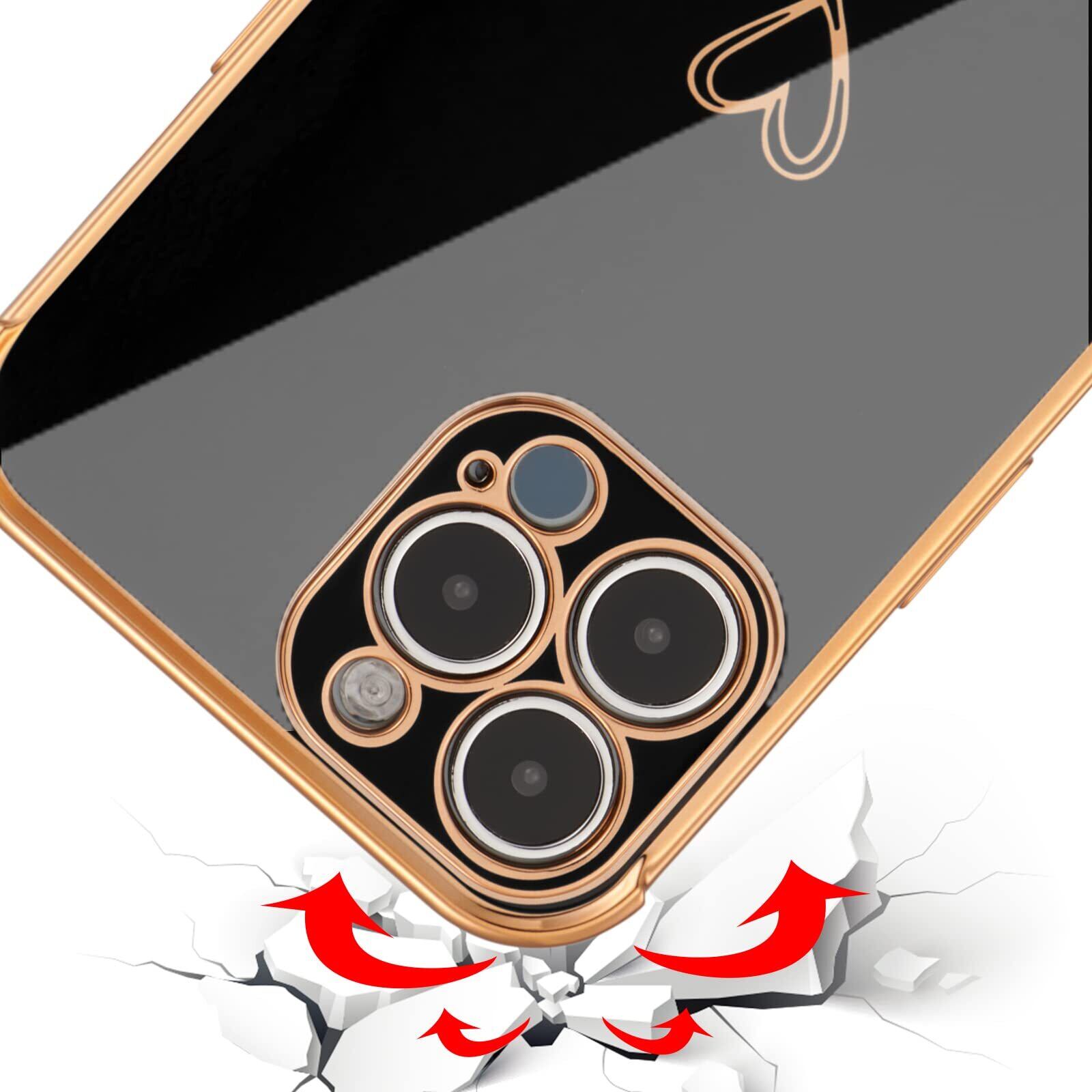 ZTOFERA iPhone 14 Pro 用 ハートケース iPhone 14 Pro ケース 柔軟な TPU シリコン スマホケース メッキ加工 ソフト 軽量 耐衝撃 おしゃれ 韓国 可愛い アイフォン 14 Pro ケース 女子 女性 心パターン 携帯電話カバー ワイヤレス充電対応 (ブラック)