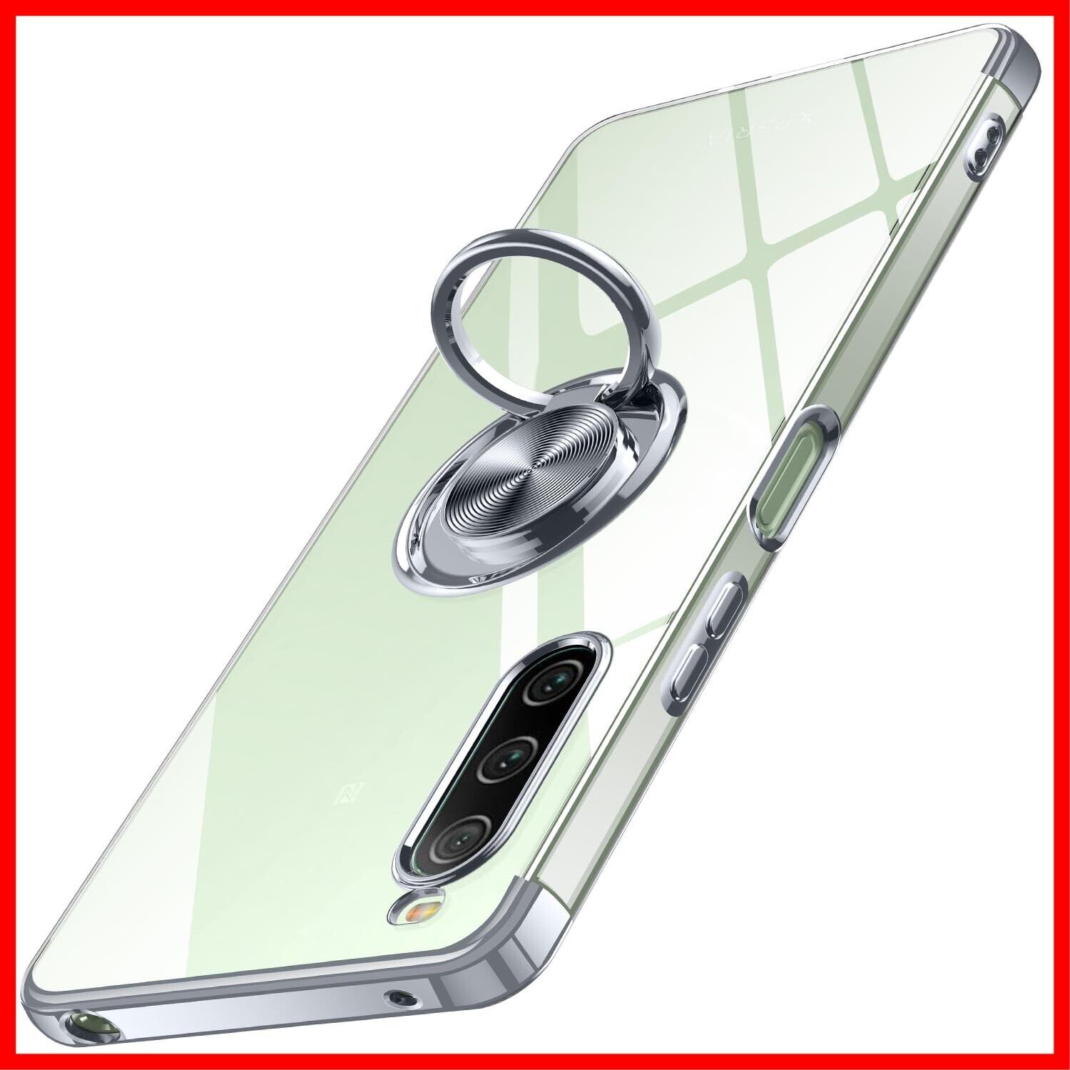 Xperia 10 V 用 ケース クリア リング付き エクスペリア 10 V/SO-52D / SOG11 カバー 透明 おしゃれ OURJOY スマホケース メッキ加工 ソフトケース 耐衝撃 軽量 薄型 ストラップホール付き スタンド機能 車載ホルダー対応 携帯ケース・シルバー