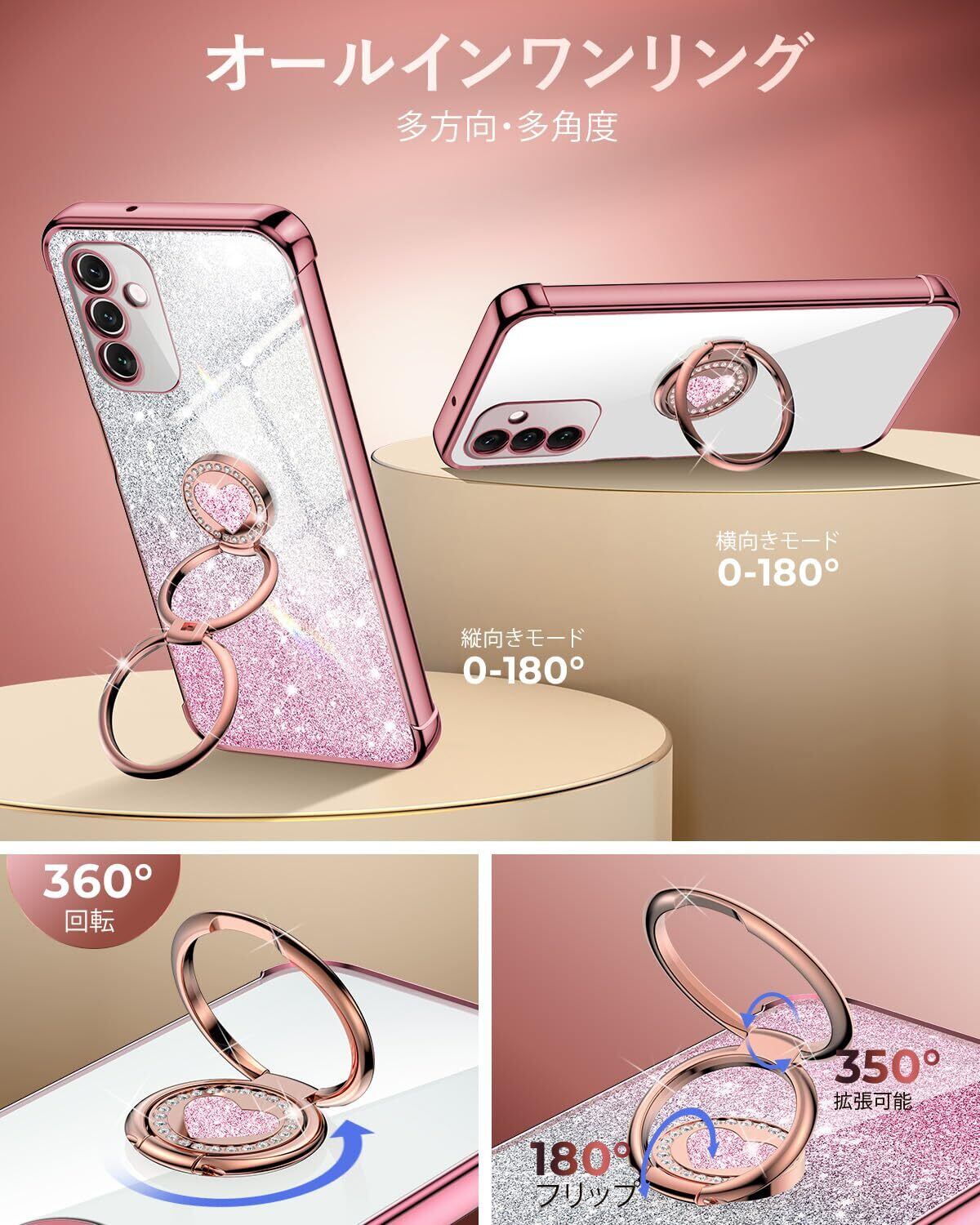【2ウェイ360°リングスタンド】このGalaxy S24用ケースは、180°折り畳み、360°回転できるハート型のリングが特徴です。このダブルリングスタンドは、複数の角度を調整でき、縦向きと横向きの両方のモードをサポートします。安定しており、読書、サーフィン、映画鑑賞、FaceTimeをするときに快適です。
