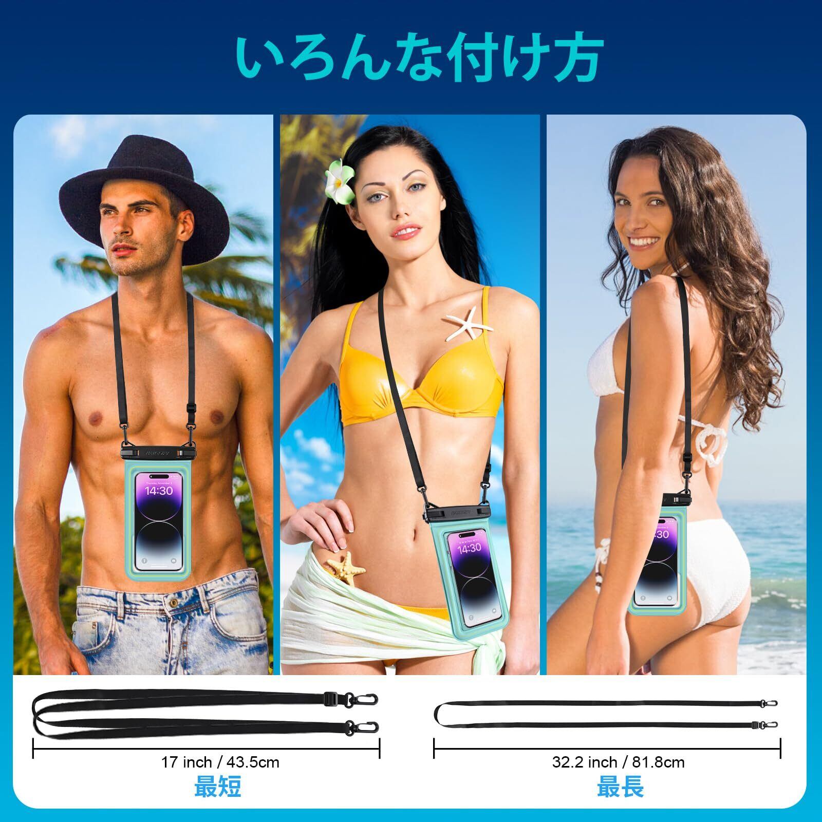 「調整ベルト・楽しさ倍増」携帯スマホ防水ケース海に付属したストラップの長さの調整範囲:44cm~82cm。場合によって様々な長さでご利用ください。プールで水泳、潜水、海辺での撮影、お風呂、スキー、雪遊び、温泉、料理、釣りなど様々なアウトドアとレジャーの場合に役に立てて、海辺に掛け替えないスマホグッズです。