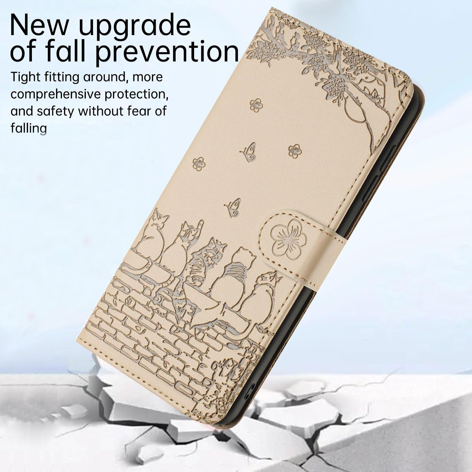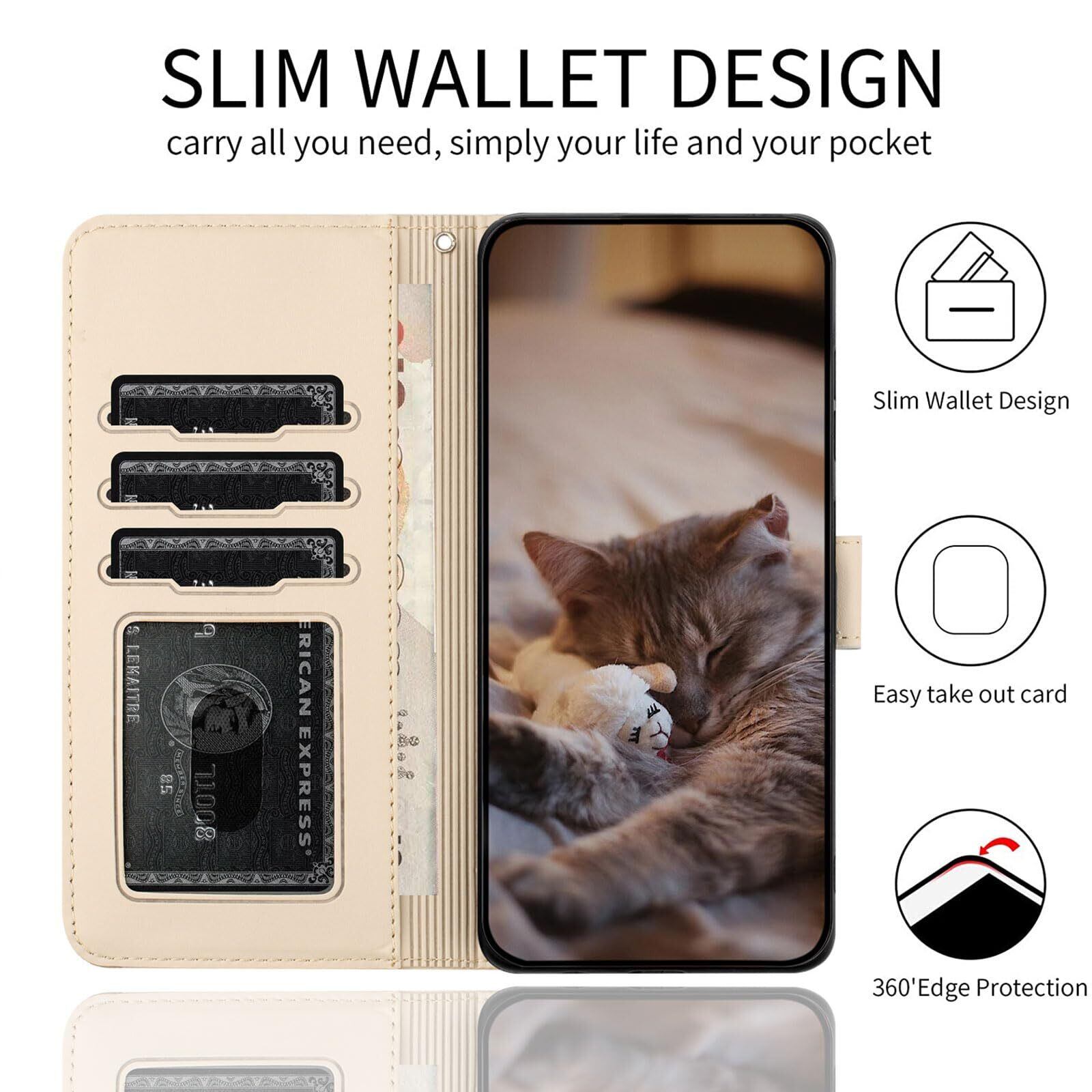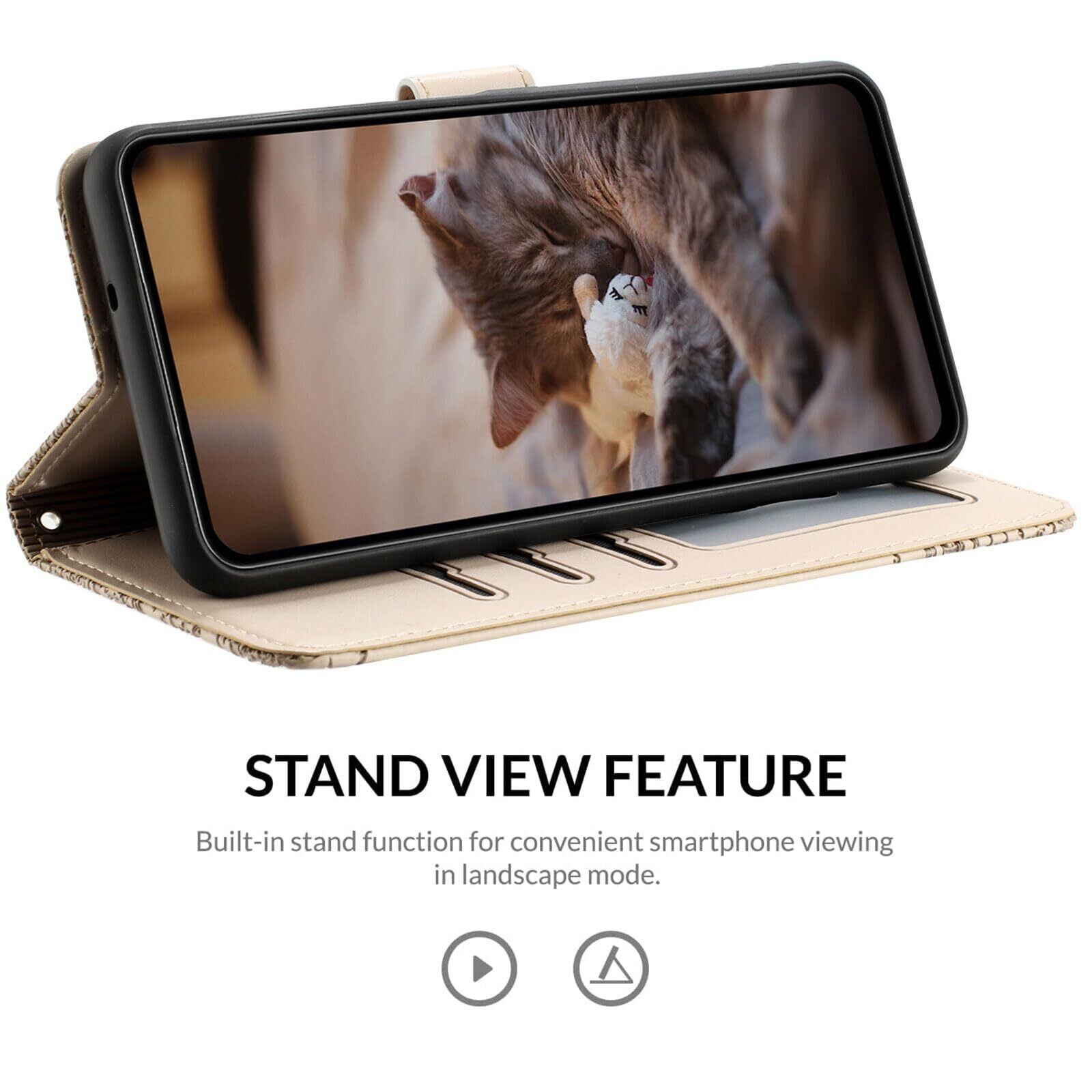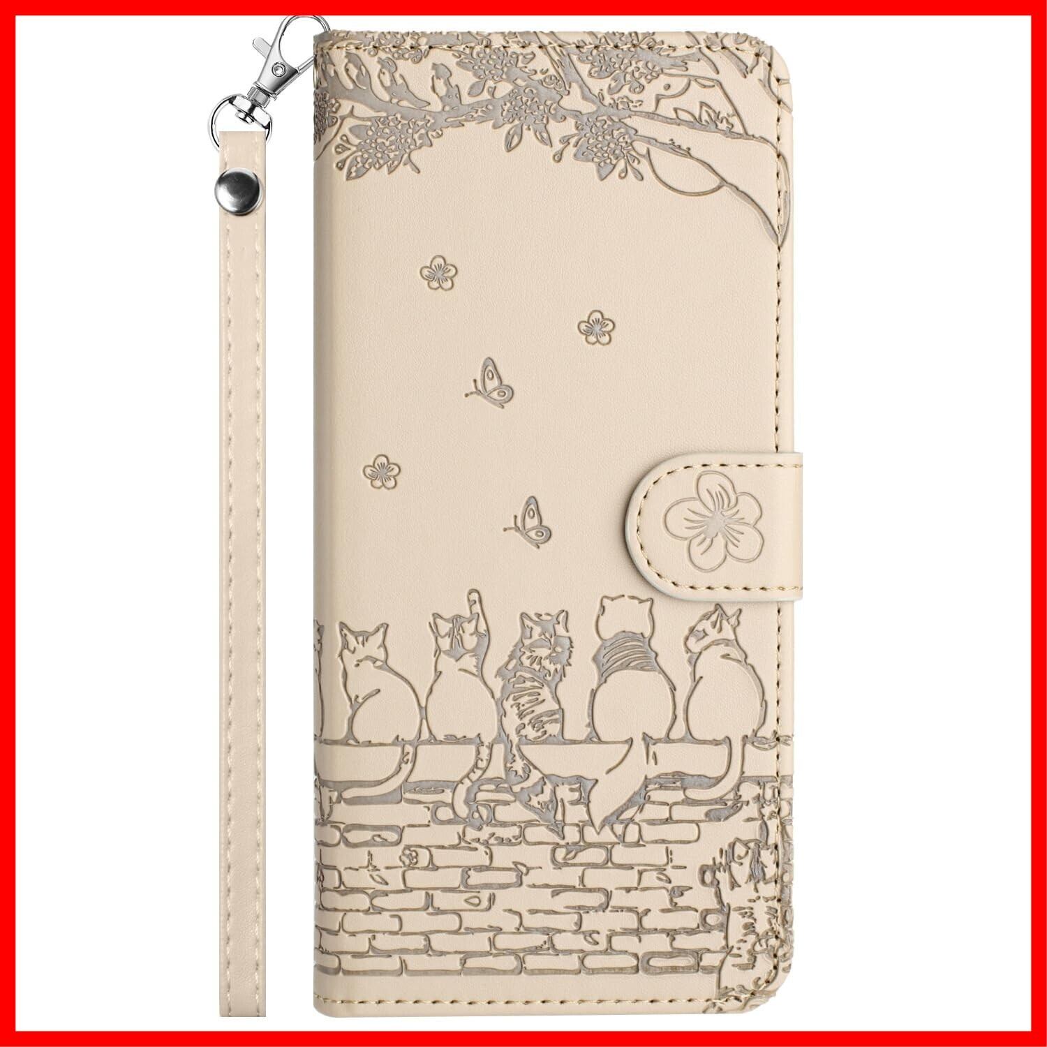 ALSDKEZI Samsung Galaxy S23 FE ケース 手帳型 可愛い 猫柄 ギャラクシー S23 FE SCG24 au 携帯カバー 蝶の花柄 スマホケース おしゃれ カード入れ 財布型 Galaxy S23 FE カバー 動物柄 カード収納 スタンド機能 軽量 便利 内蔵マグネット式 ベージュ 純色シンプルデザイン - Beige