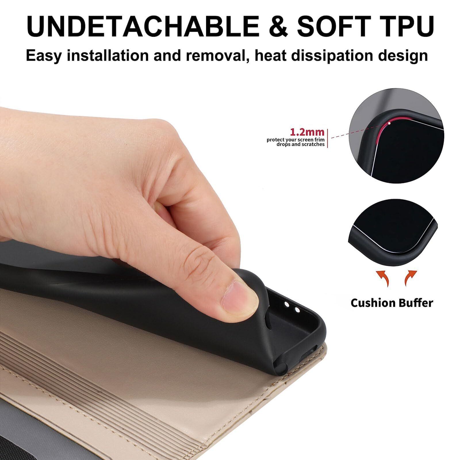 【高品質の素材】: ①手帳部分:高品質なPUレザー合成革素材で作られ、心地よい手触りです。耐久性も申し分ありません。②内側ケース:柔軟なTPU(ブラック)を採用しており、放熱性や耐衝撃が良く、傷や埃を防ぐことができる。スマホの着脱が簡単ですし、スマホ本体をしっかり保護します。