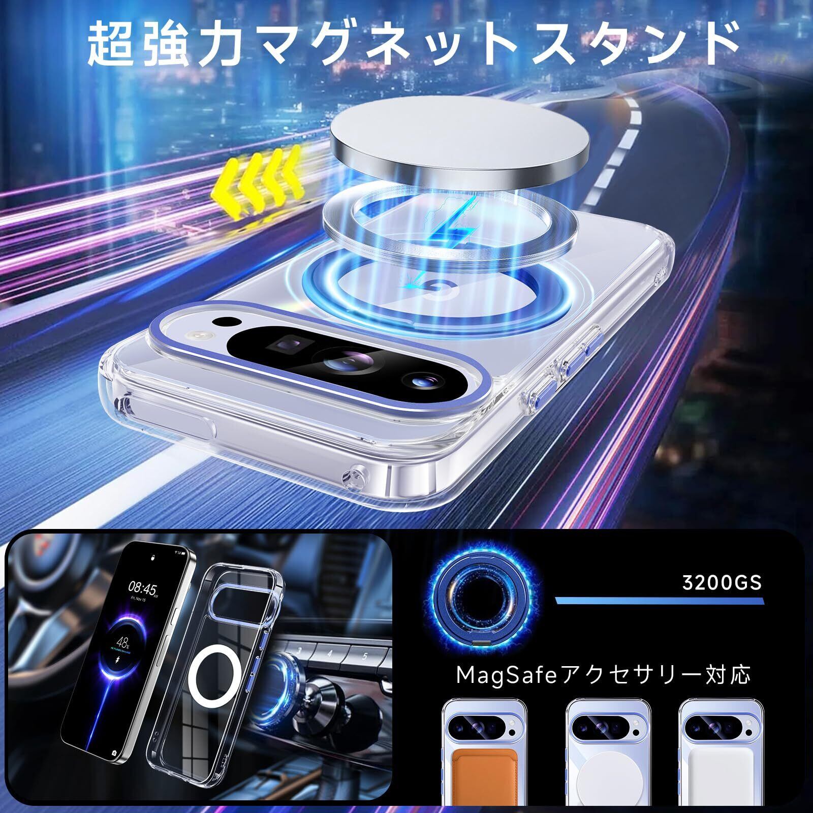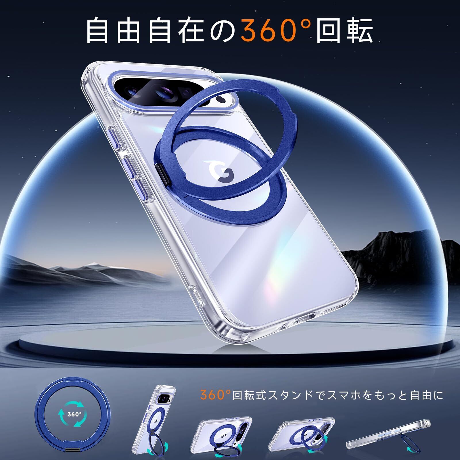 【米軍MIL規格・Magsafe対応】Google Pixel 9 / 9 Pro 用 ケース MagSafe対応 リング 360°回転スタンド機能 縦横両対応 透明 黄ばみ防止 ワイヤレス充電 レンズ保護 耐衝撃 携帯カバー グーグルピクセル9/9プロ カバー 6.3 インチ マグネット搭載 車載ホルダー マグセーフ対応 おしゃれ (クリアブルー) | hananoki