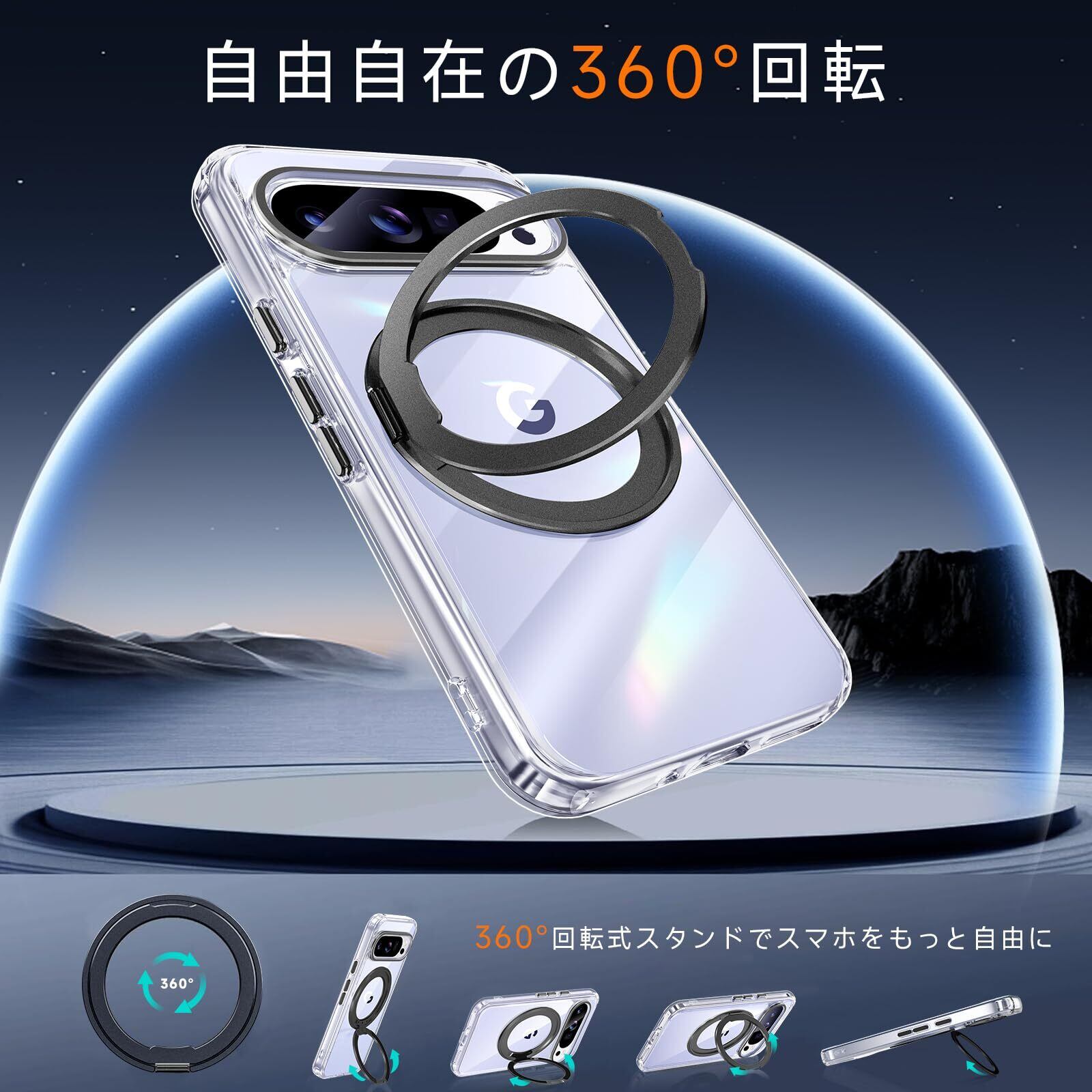 【米軍MIL規格・Magsafe対応】Google Pixel 9 / 9 Pro 用 ケース MagSafe対応 リング 360°回転スタンド機能 縦横両対応 透明 黄ばみ防止 ワイヤレス充電 レンズ保護 耐衝撃 携帯カバー グーグルピクセル9/9プロ カバー 6.3 インチ マグネット搭載 車載ホルダー マグセーフ対応 おしゃれ (クリアブラック)