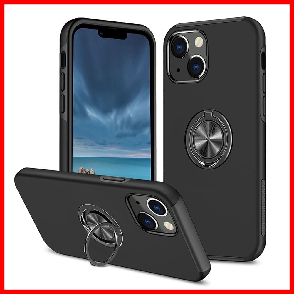 アイフォン14 ケース リング付き 耐衝撃 TPU 二重構造 iPhone 14 用 バンカー リング カバー Uovon スマホケース リングつき スタンド機能 車載ホルダー対応 擦り傷防止 落下防止 おしゃれ · ブラック | hananoki
