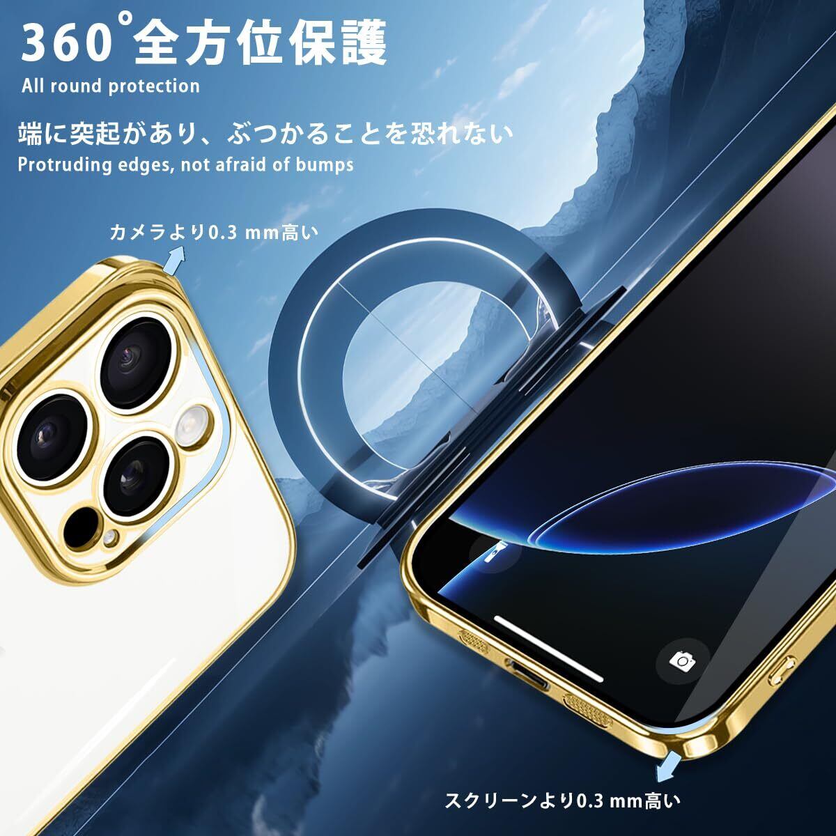 ZHUAZHULE iPhone16 ProMax ケース クリア アイフォン16ProMax スマホケース メッキ加工 耐衝撃 カバー 透明 TPU レンズ保護 ストラップホール付き 薄型 黄変防止 擦り傷防止 人気 (ゴールド)