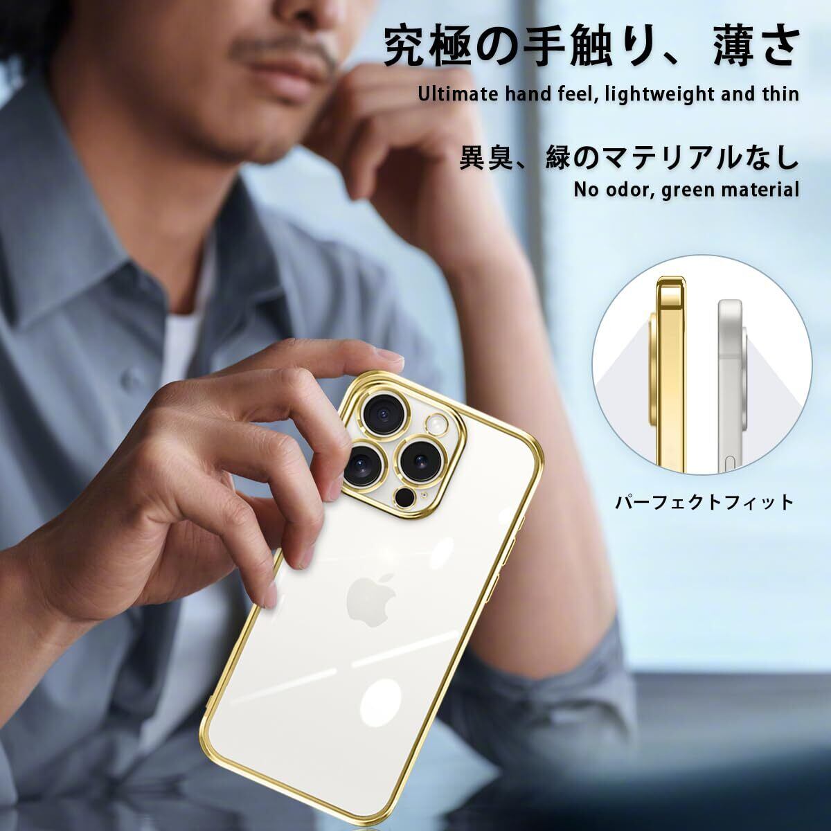 ZHUAZHULE iPhone16 ProMax ケース クリア アイフォン16ProMax スマホケース メッキ加工 耐衝撃 カバー 透明 TPU レンズ保護 ストラップホール付き 薄型 黄変防止 擦り傷防止 人気 (ゴールド) | hananoki
