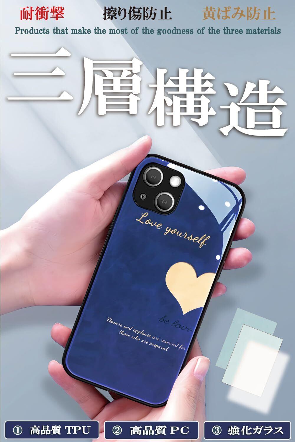 材質(三層構造): 高品質 TPU + 高品質 PC + 強度抜群 強化ガラス