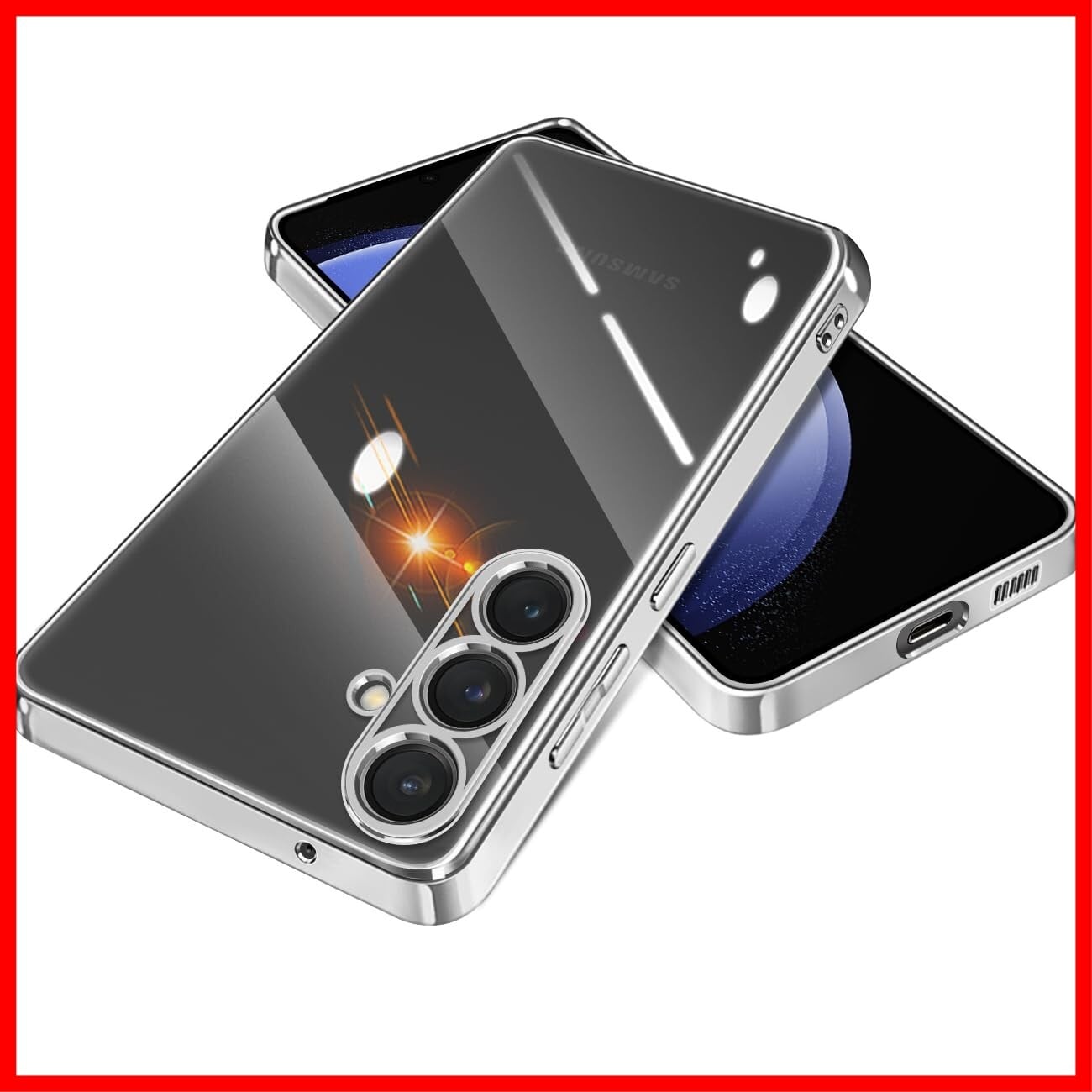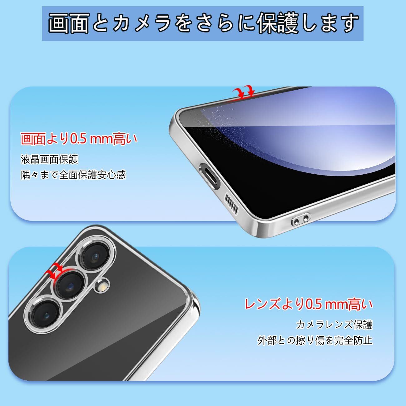 Samsung Galaxy S23FE ケース クリア 耐衝撃 薄型 軽量 SCG24 対応 ギャラクシーS23FE カバー 透明 TPU素材 韓国 ファッション スマホケース 衝撃吸収 メッキ加工 ソフトケース 黄変防止 耐久性 人気 ストラップホール付き サムスン ギャラクシー S23FE 携帯ケース 6.4インチ(シルバー)
