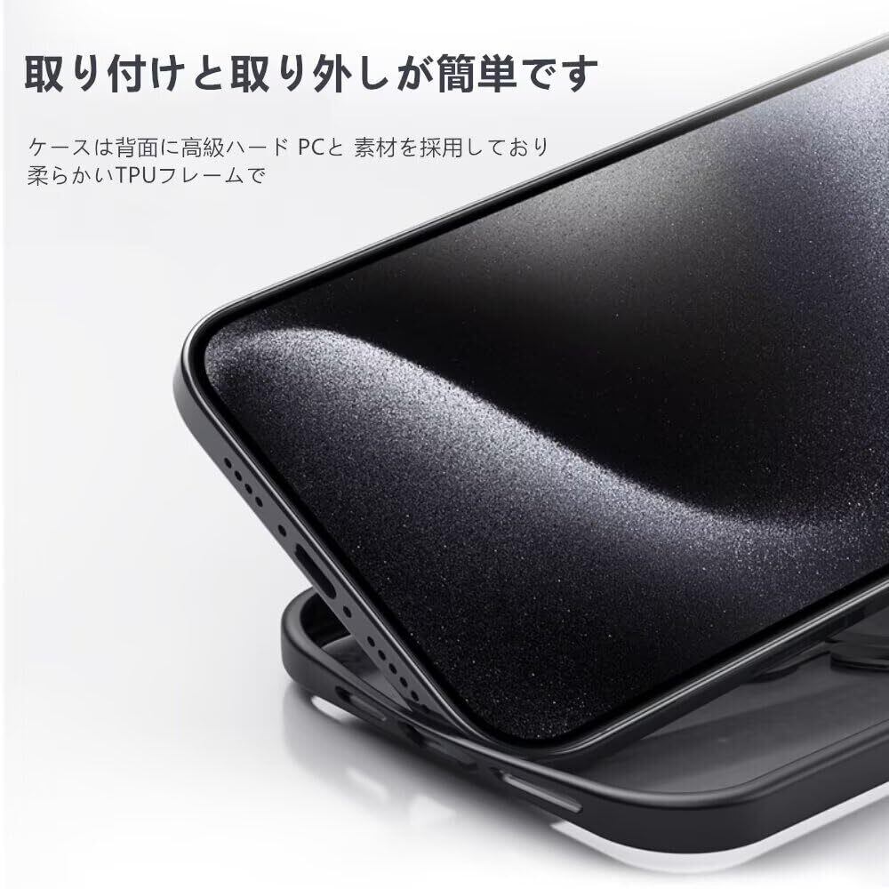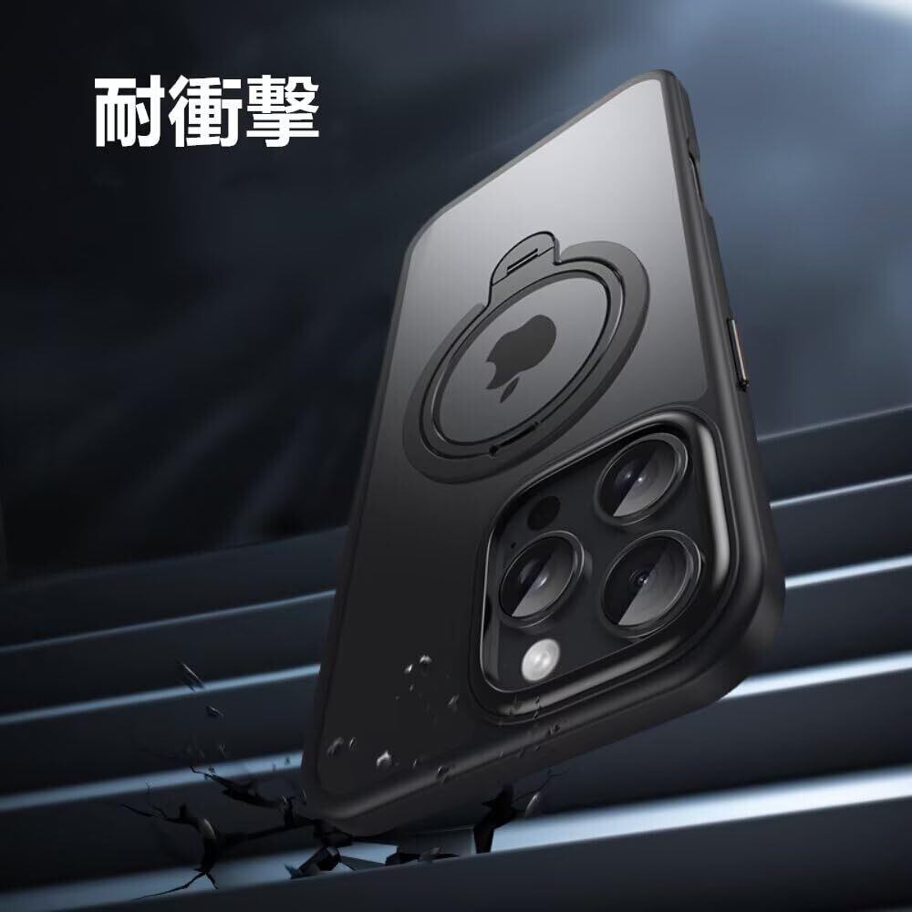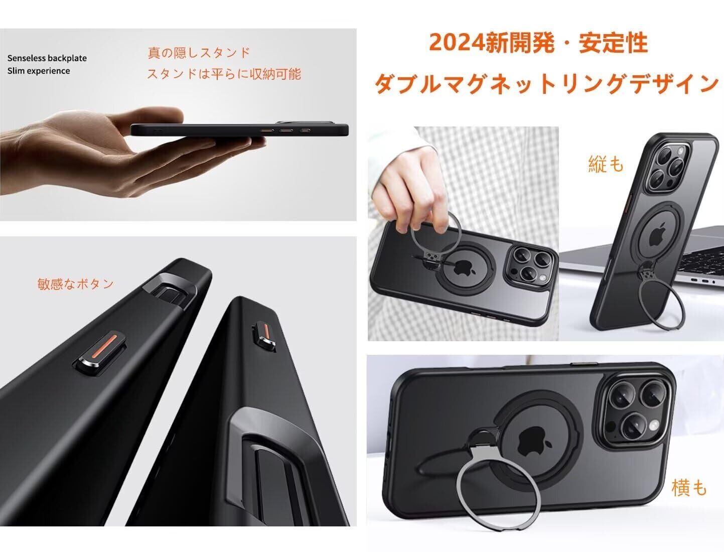 2024新開発 ダブルリング搭載・定点360度回転スタンド iPhone 用 16 ケース 半透明 隠し収納式スタンド MagSafe対応 縦横両立 角度調整 アイホン16用ケース 耐衝撃 ブラック
