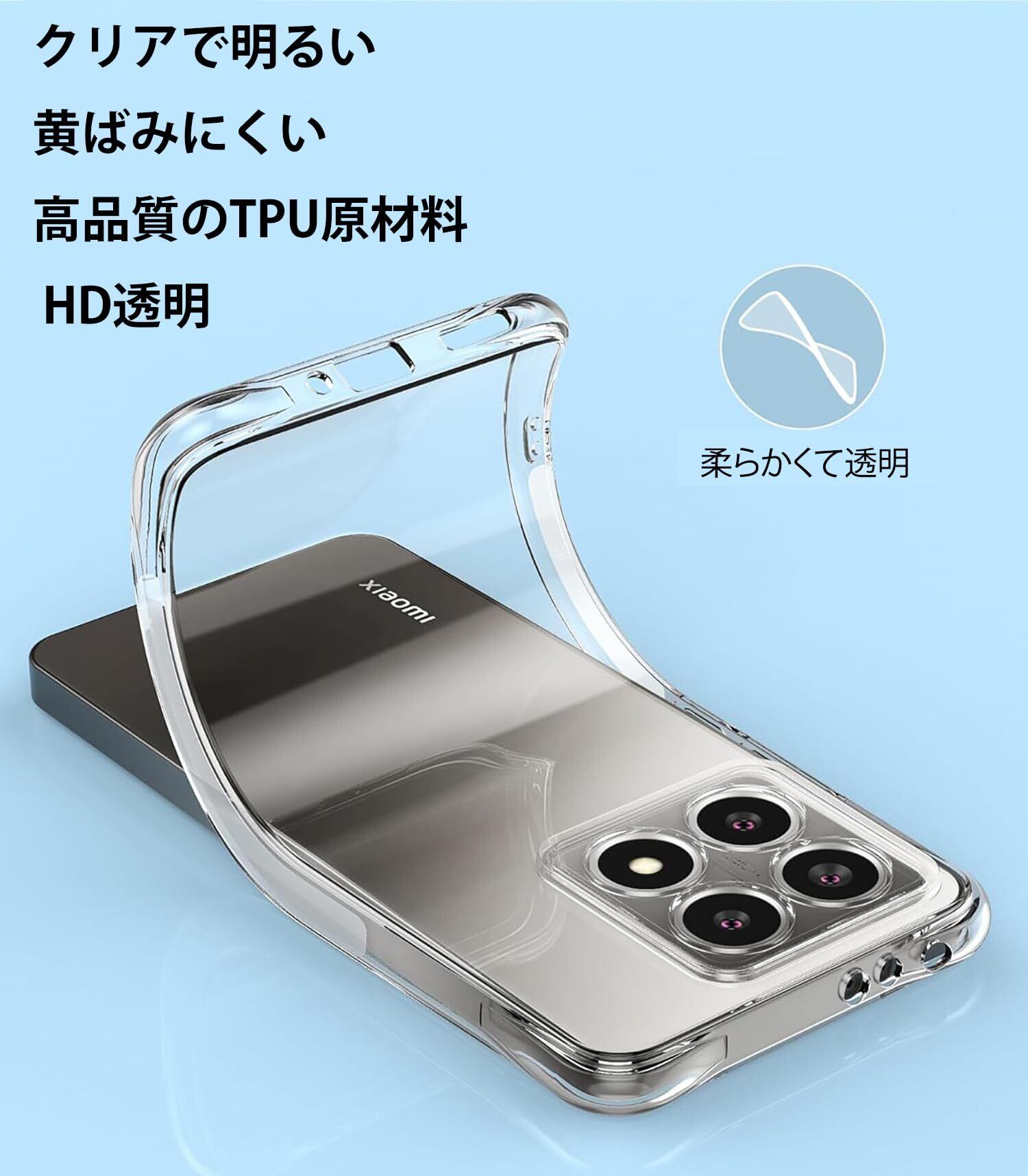 【高い透明度】 透明度が高く、鮮やかな色をそのまま映し出すことができ、 本体のオリジナルのカラーを損ねません。ケースの端はダイヤモンドカットプロセスを施すことでより洗練された美しい外観となっています。 Xiaomi 14T Proの美しさはそのままに、保護しているのです。