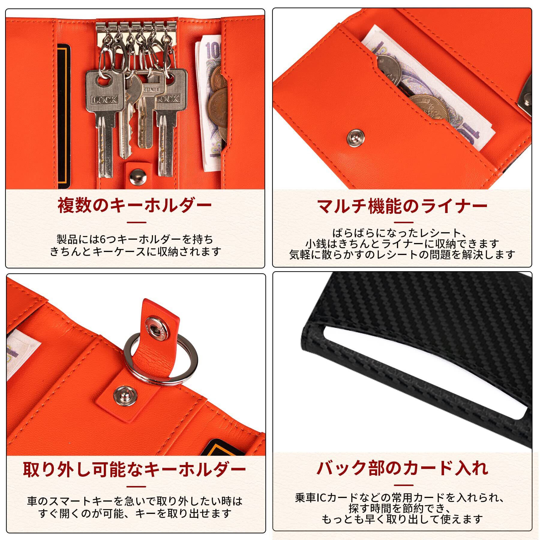 【多機能&便利】キーケースには6本の鍵を収納できます。取り外し可能なキーホルダー付き。住宅用キー、車のスマートキー、自転車のキー、オフィスキーやロッカーキーなどを一緒に収納できます。さらに、レシートやキャッシュカード、ICカードなども収納可能なポケットがあり、紛失の心配を解消します。