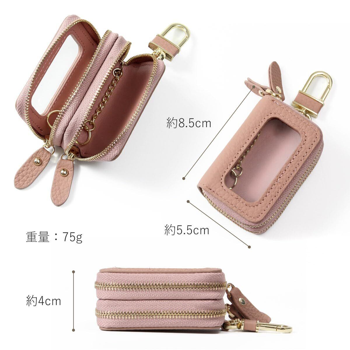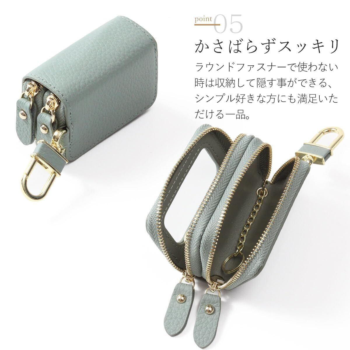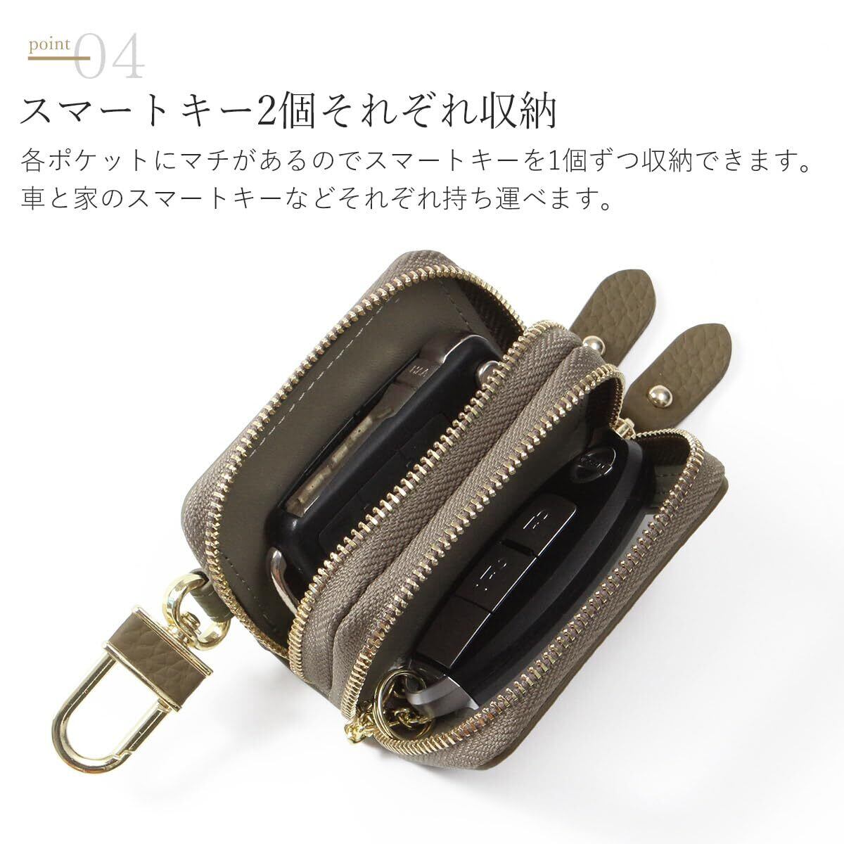 【透明感のあるナチュラルなカラー】 落ち着いた雰囲気のカラーラインナップ。 【本革だけの上質感】 くすみカラーのマットなシボ革が好印象なキーケース。 【窓付きでそのまま操作可能】 中身が見えるクリアな小窓付きなのでスマートキーを取り出すことなくボタン操作が可能です。 【スマートキー2個それぞれ収納】 各ポケットにマチがあるのでスマートキーを1個ずつ収納できます。 車と家のスマートキーなどそれぞれ持ち運べます。 【かさばらずにスッキリ】 ラウンドファスナーで使わない時は収納して隠すことができる、シンプル好きにも満足いただける一品。