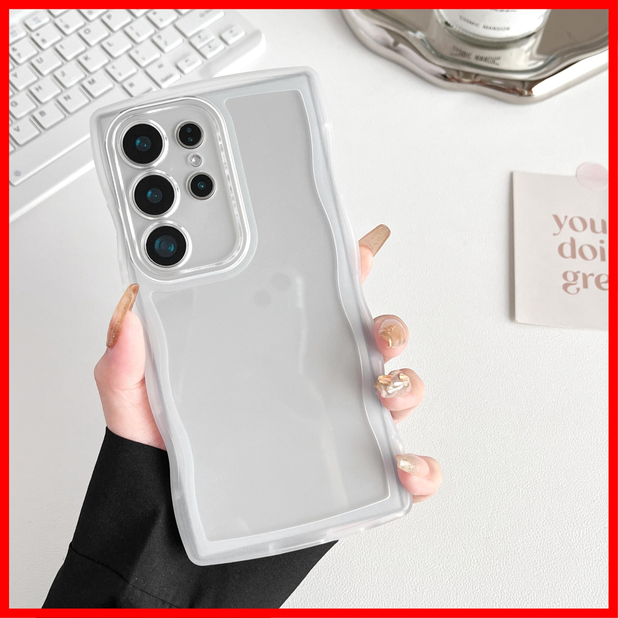 ZTOFERA Samsung Galaxy S24 Ultra ケース用、クリア透明可愛いうねうね波状フレームおしゃれデザイン、ソフトTPU滑り止め傷防止耐衝撃性の電話カバーSamsung S24 Ultra 5Gケース用、白い | hananoki
