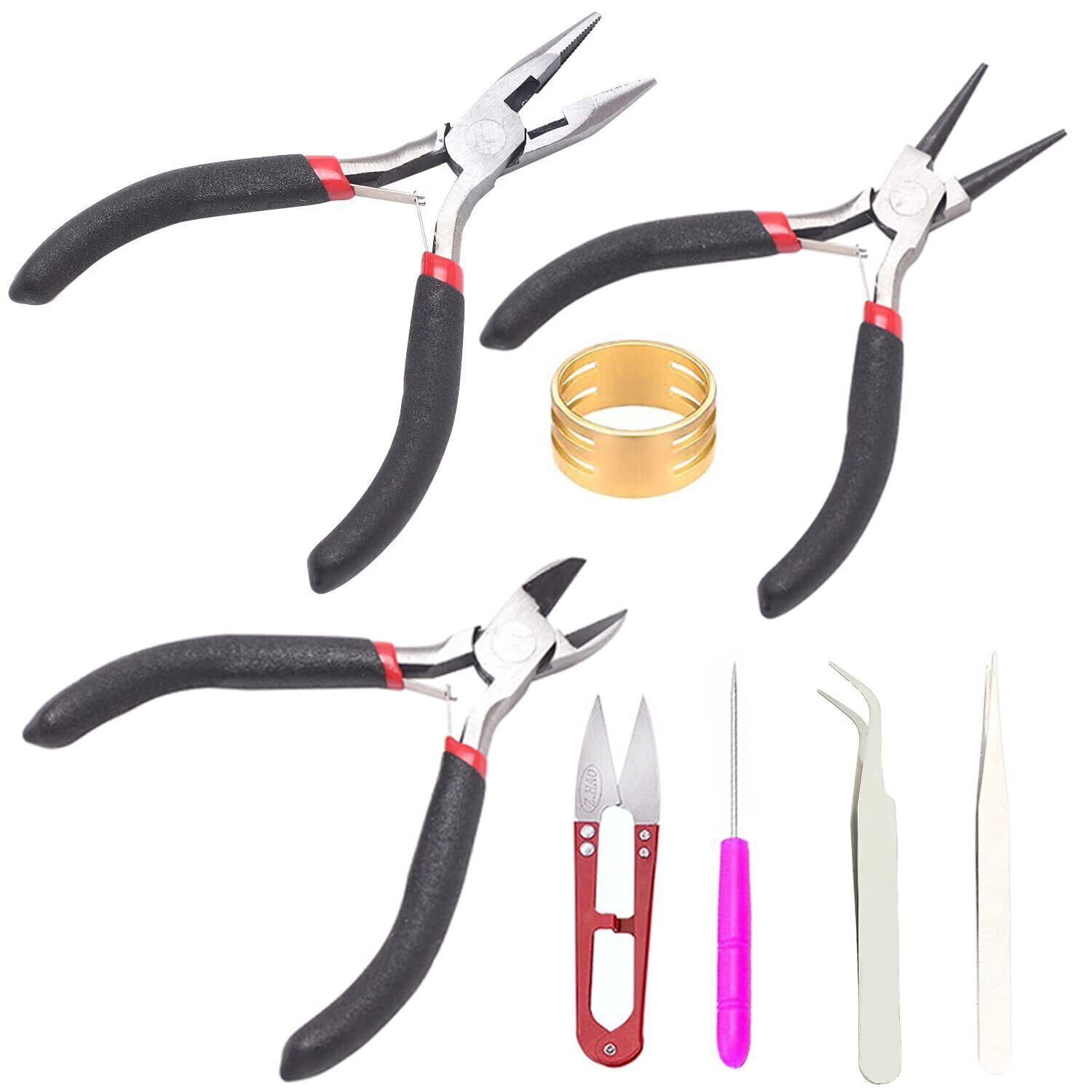 KEWAYO ジュエリー制作ツール 手芸ツール 8点セット 金具 平ペンチ 丸ペンチ ニッパー ピンセット 目打ち 糸切ハサミ ジュエリー作り ハンドメイド 手芸用品