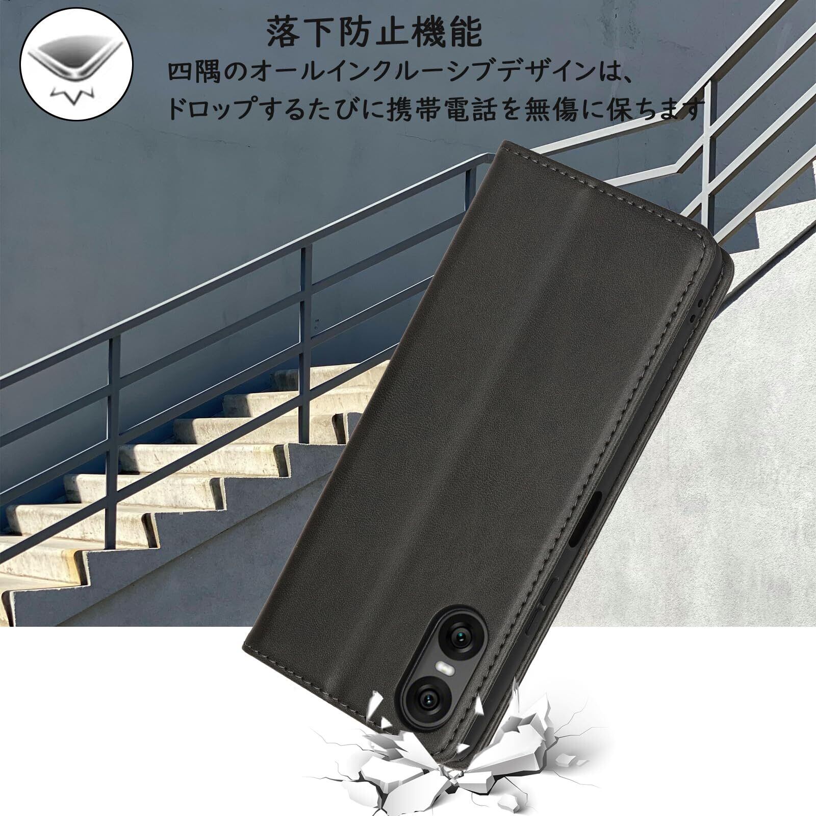 【Hamany】 sony xperia 10 vi ケース 手帳型 エクスペリア10 vi ケース カード収納 so-52e / sog14 スマホケース 財布型 耐衝撃 耐摩擦 耐久性 内蔵マグネット 横置きスタンド機能 レザー カバー -紳士黒