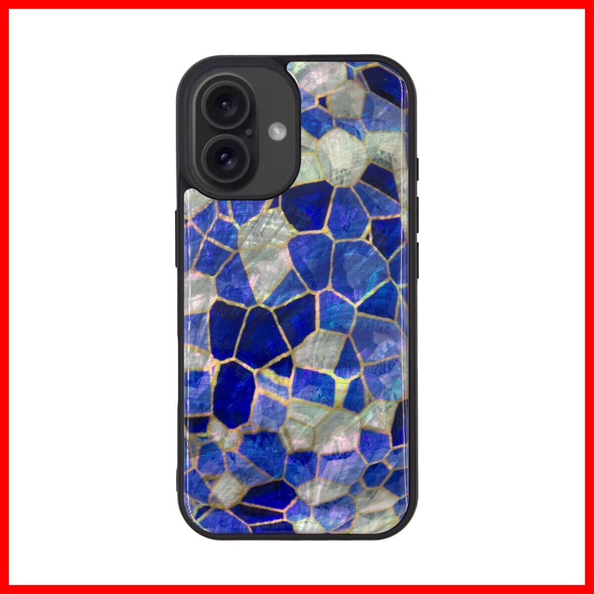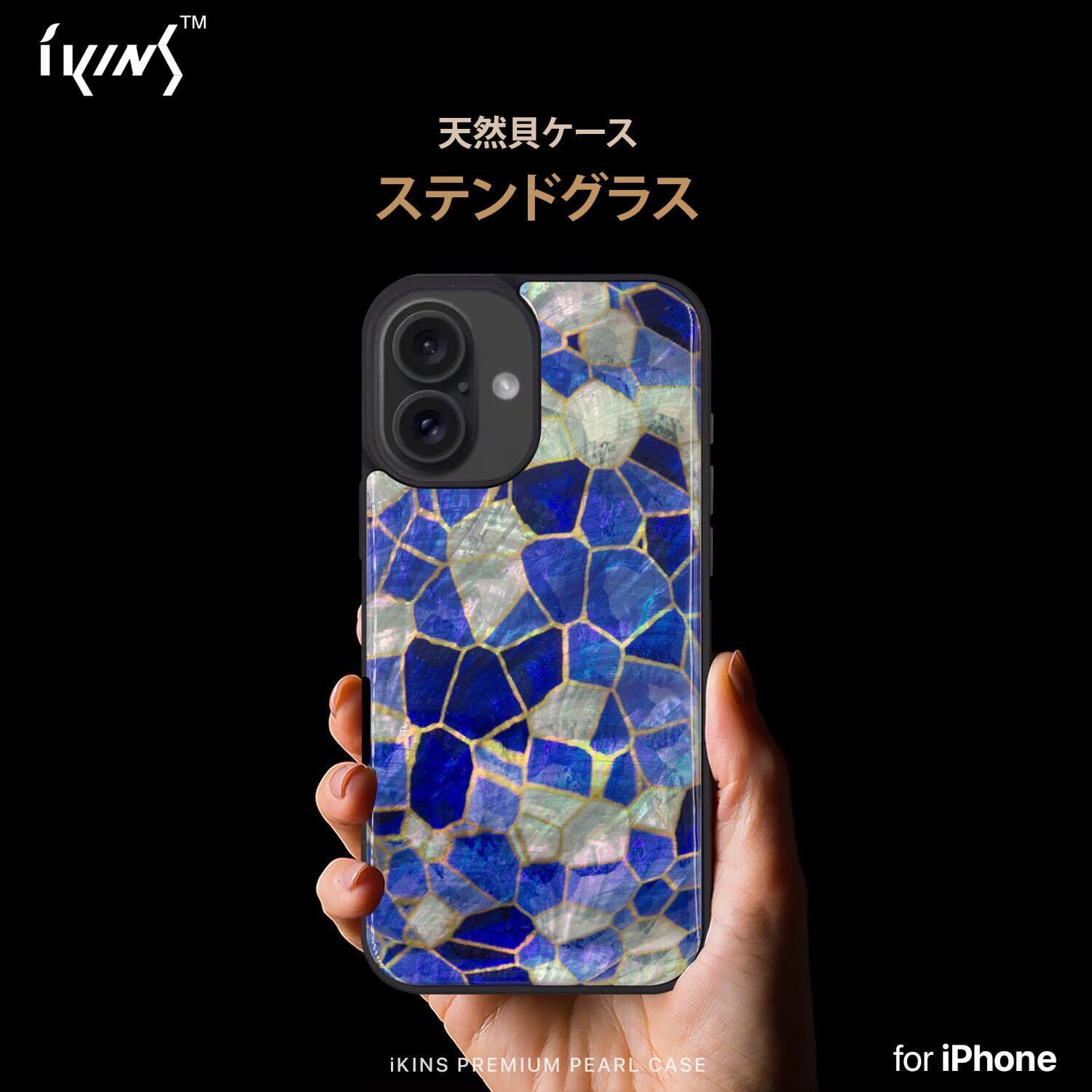 ikins iPhone 16 ケース 天然貝 ステンドグラス [ パール 光沢 表面コーティング加工 着脱しやすい ストラップホール付き ワイヤレス充電 ] アイフォン 保護カバー ブルー I27129i16 【国内正規品】 | hananoki