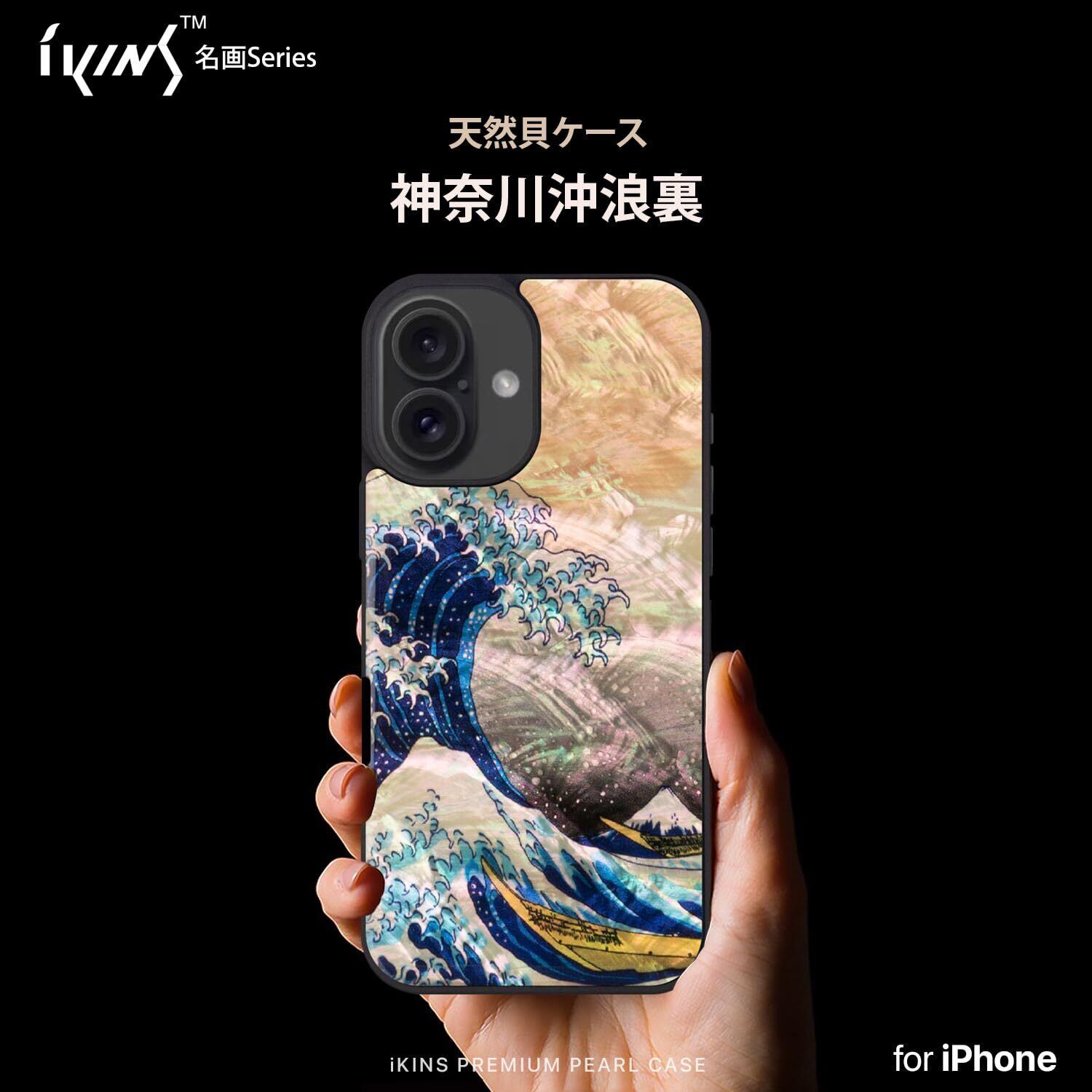 ikins iPhone 16 ケース 天然貝 神奈川沖浪裏 [ パール 光沢 表面コーティング加工 着脱しやすい ストラップホール付き ワイヤレス充電 ] 名作絵画 アイフォン 保護カバー I27115i16 【国内正規品】 | hananoki
