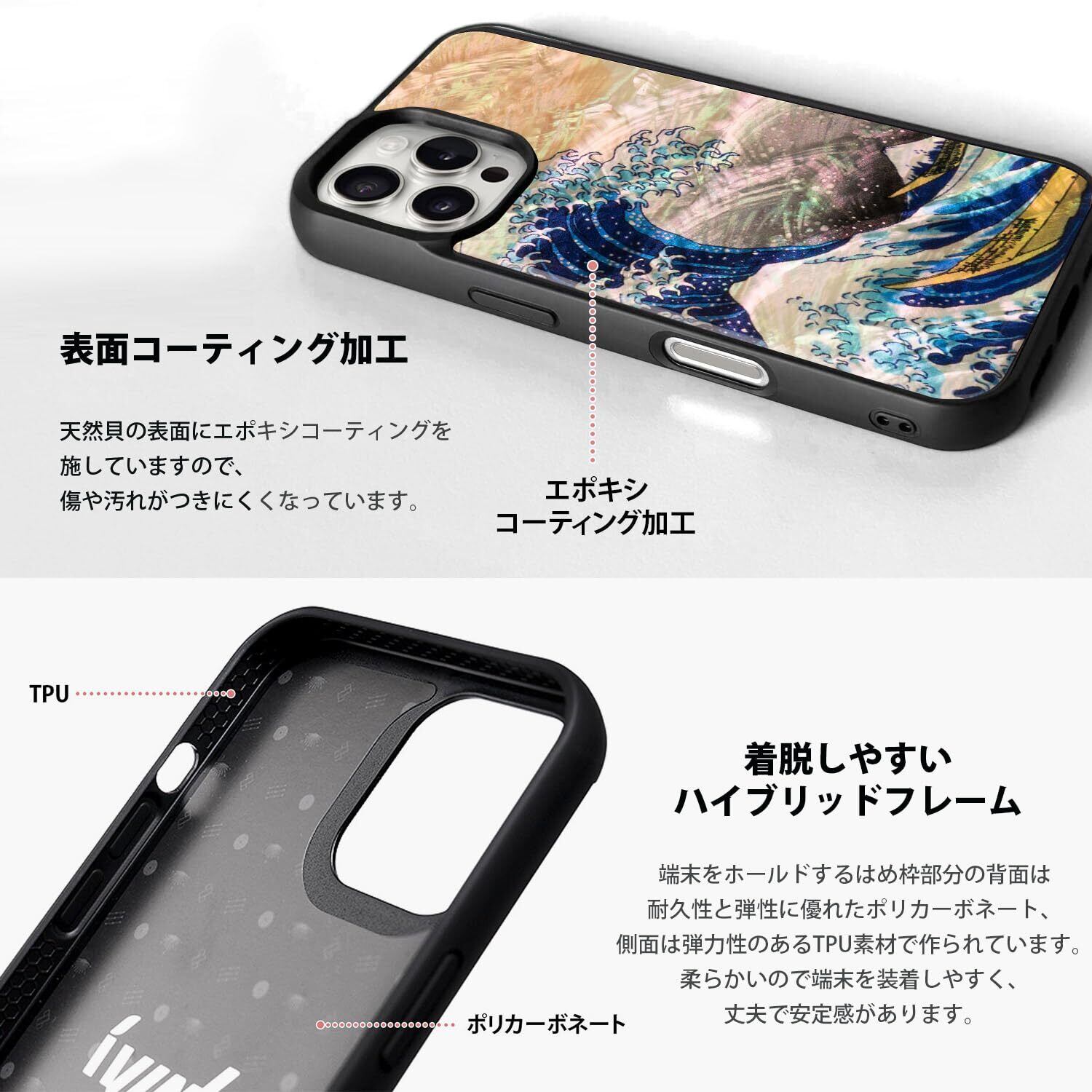 【表面コーティング加工】天然貝の表面にエポキシコーティングを施していますので、傷や汚れがつきにくくなっています。【着脱しやすいハイブリッドフレーム】端末をホールドするはめ枠部分の背面は耐久性と弾性に優れたポリカーボネート、側面は弾力性のあるTPU素材で作られています。