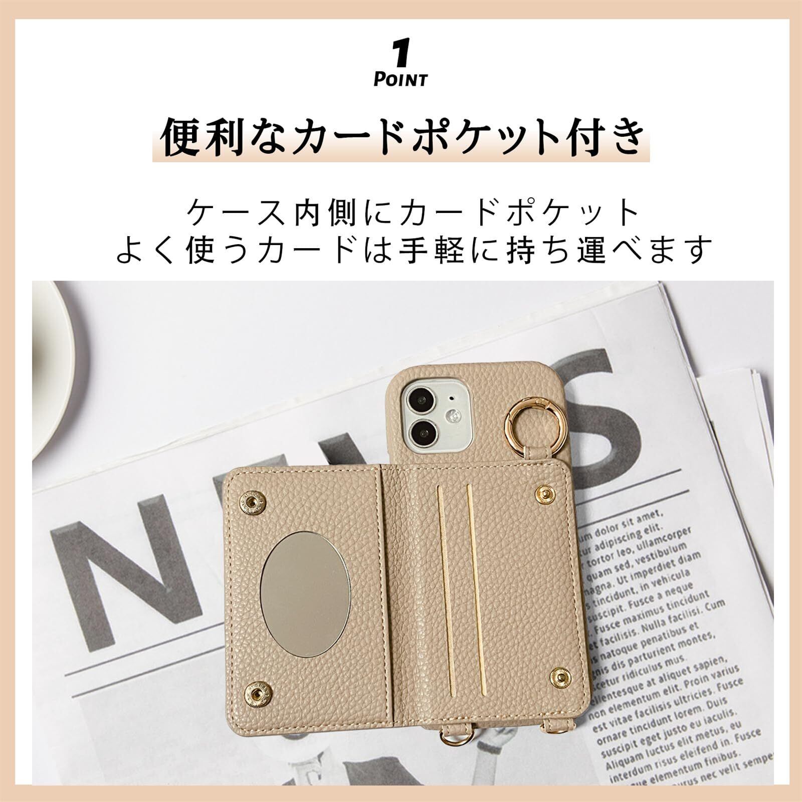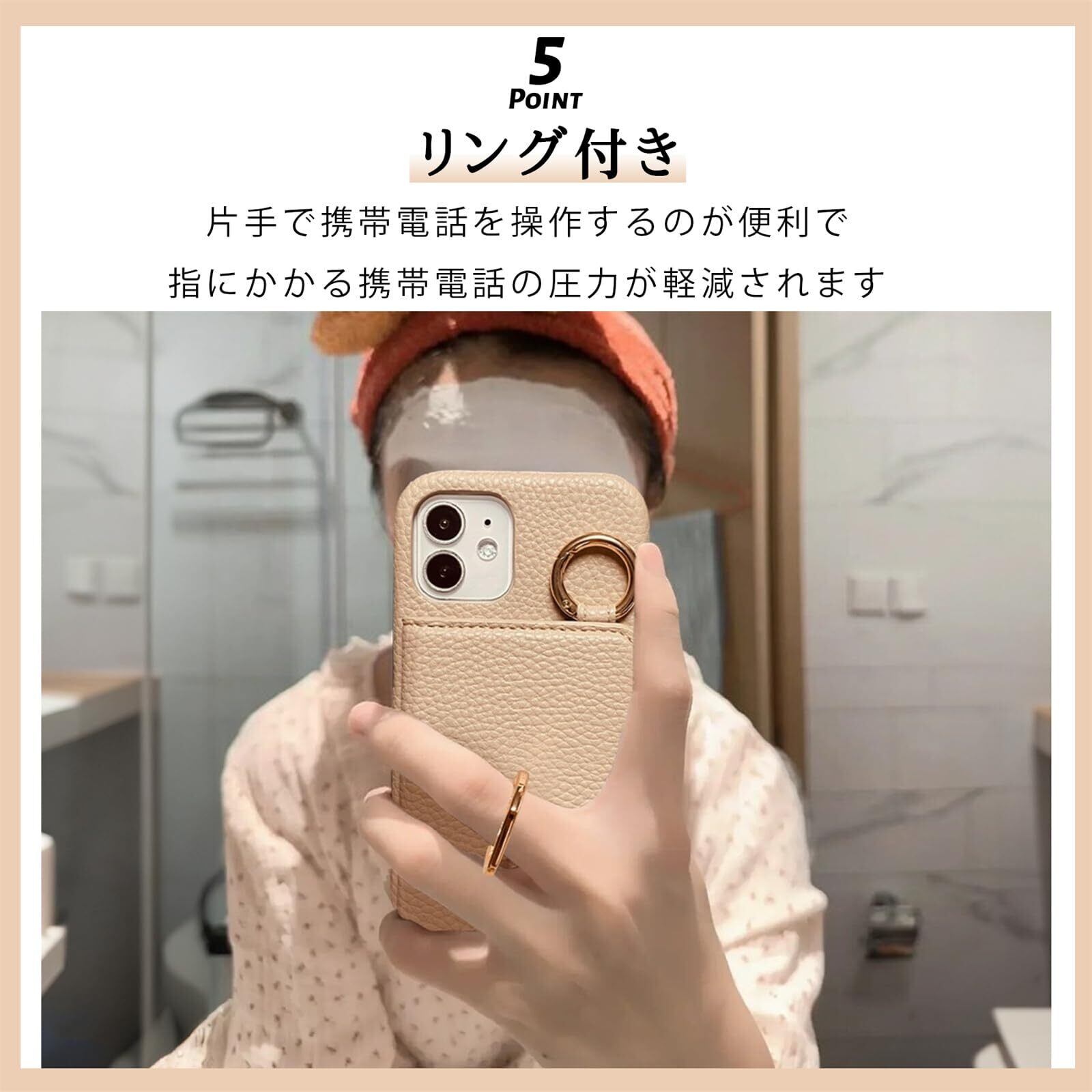 【ショルダータイプ + リング付き +ミラー+カードケース】スマホケース iPhone8 ショルダー 背面 落下防止 リング、ストラップ、カード入れ、カードが3枚入りますが(横に差し込む3枚入り) 交通ICカードやポイントカードなどを入れることができます。取り外しが簡単にできるところも使い易いと。