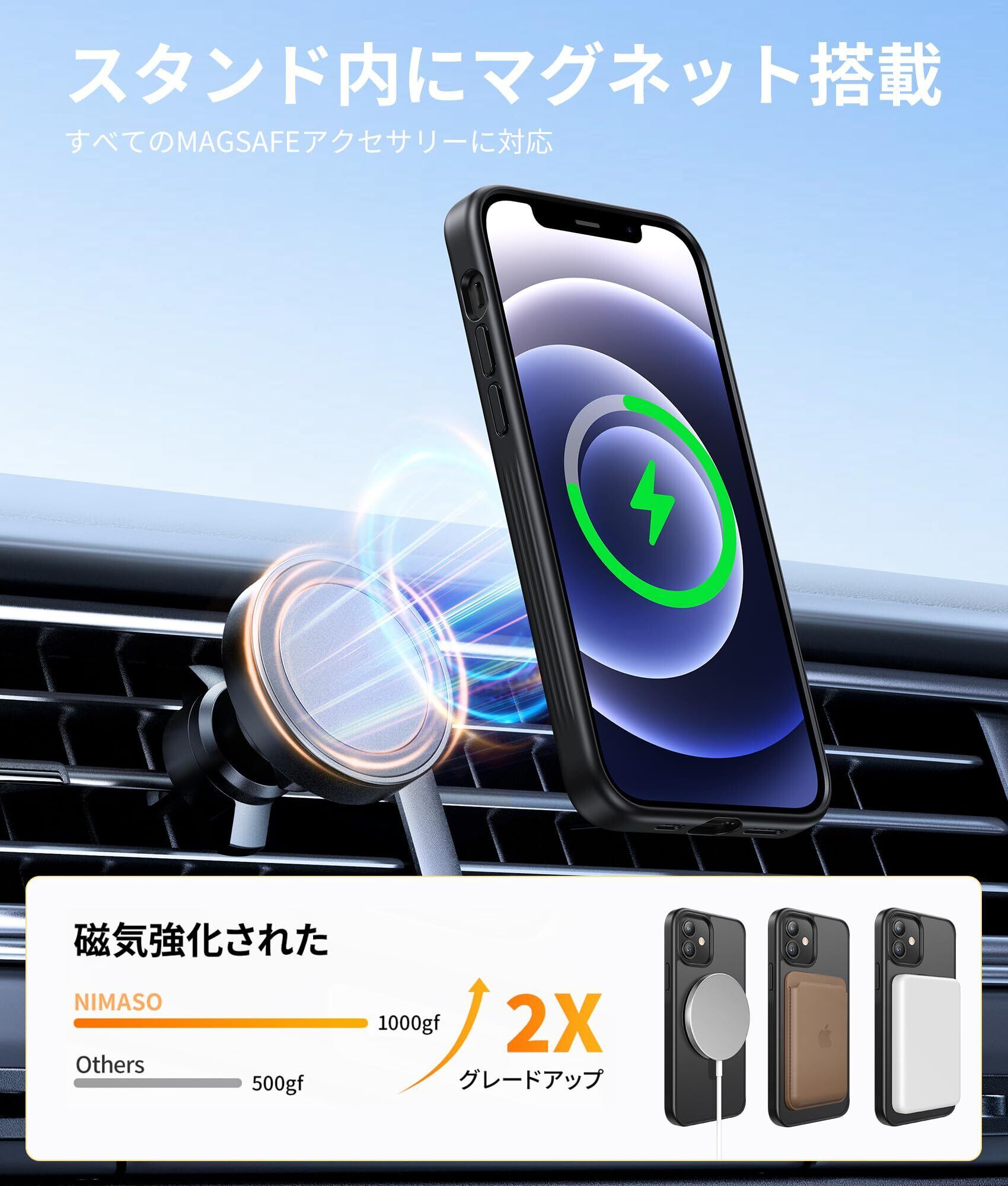 【強力な磁力吸着】iPhone 12/12Pro 用 ケースは内部に強力なマグネットを搭載しており、マグセーフ充電器やその他さまざまなマグセーフマグネットアクセサリーにしっかり密着します。どんなマグセーフアクセサリーにも安心してお使いいただけます。 (注意:本製品はMagsafeデバイスのみに対応しており、QIワイヤレス充電には対応しておりません。ご購入前に必ずご確認下さい。)