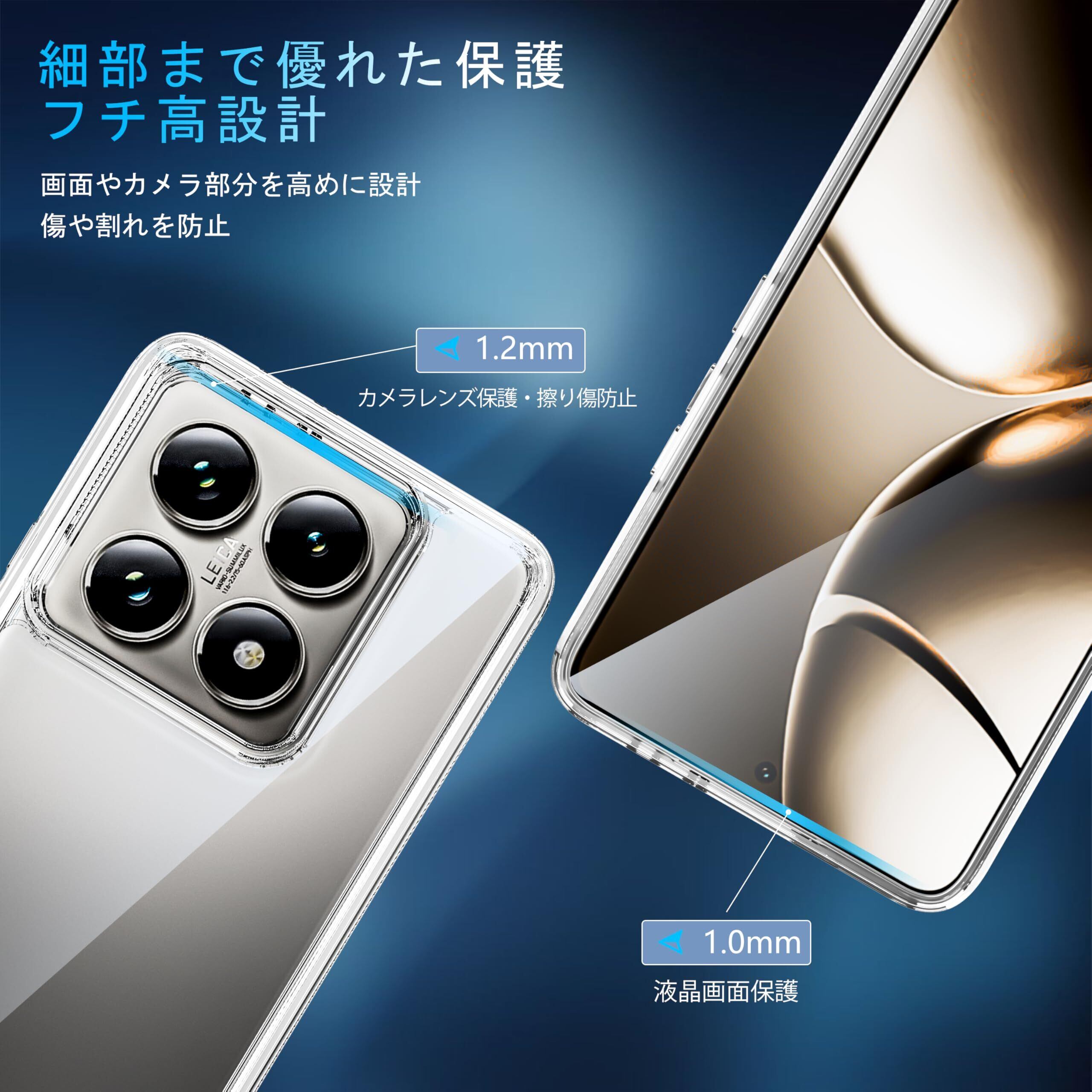 Xiaomi 14T Pro 用 ケース クリア 耐衝撃 TPU+PC 米軍MIL規格取得 SGS認証 黄ばみなし レンズ保護 ストラップホール付き Xiaomi 14T Pro 用カバー Crystal Series