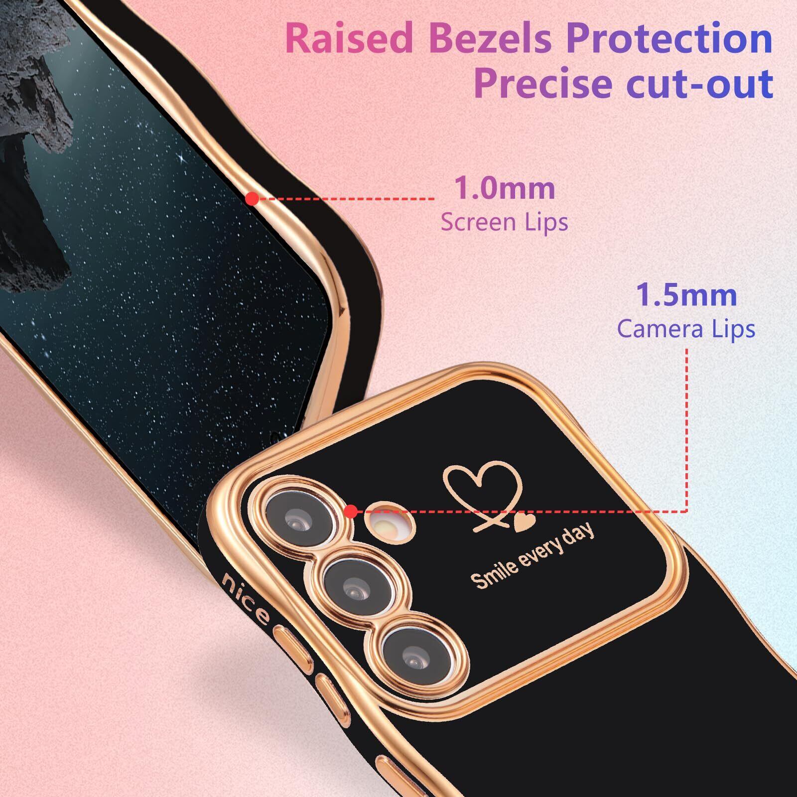 ZTOFERA Samsung Galaxy S24 FE 5G 用 ハートケース 人気 おしゃれ サムスン ギャラクシー S24 FE ウェーブ ケース 柔軟な TPU シリコン スマホケース メッキ加工 ソフト 軽量 耐衝撃 韓国 可愛い ケース 女子 女性 携帯電話カバー ワイヤレス充電対応 (ブラック)