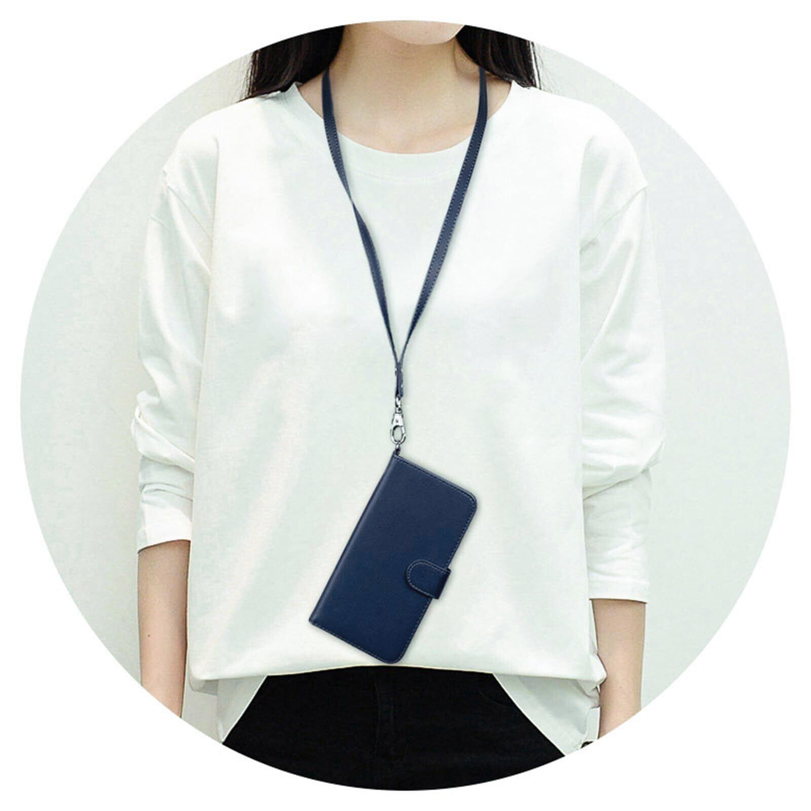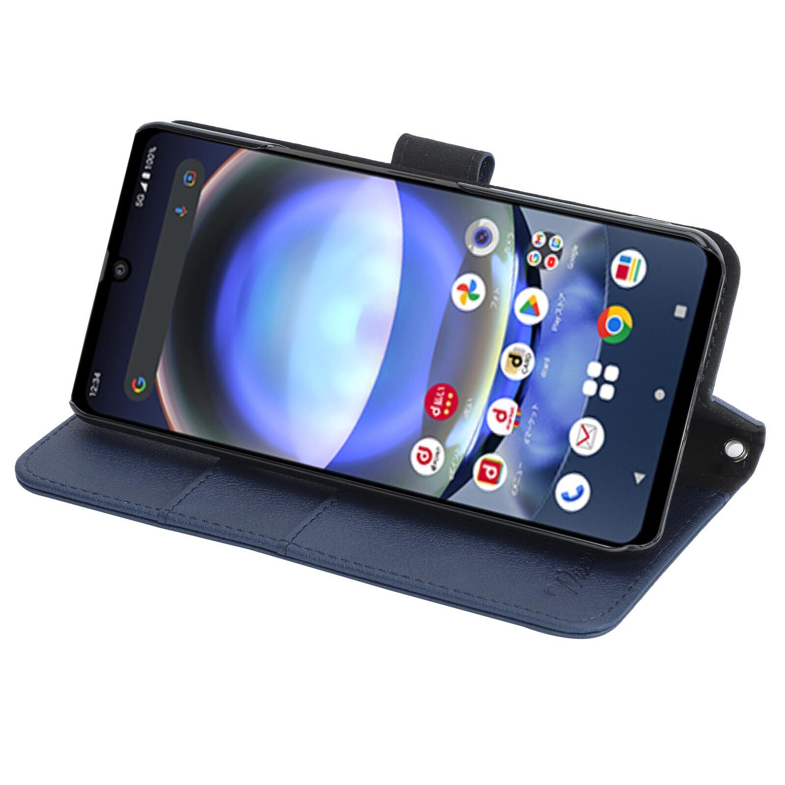 wisers AQUOS R8 SH-52D 対応 手帳型スマホケース (ダークブルー) ストラップ 2種付き (ハンドストラップ/ネックストラップ) 2023年 新型
