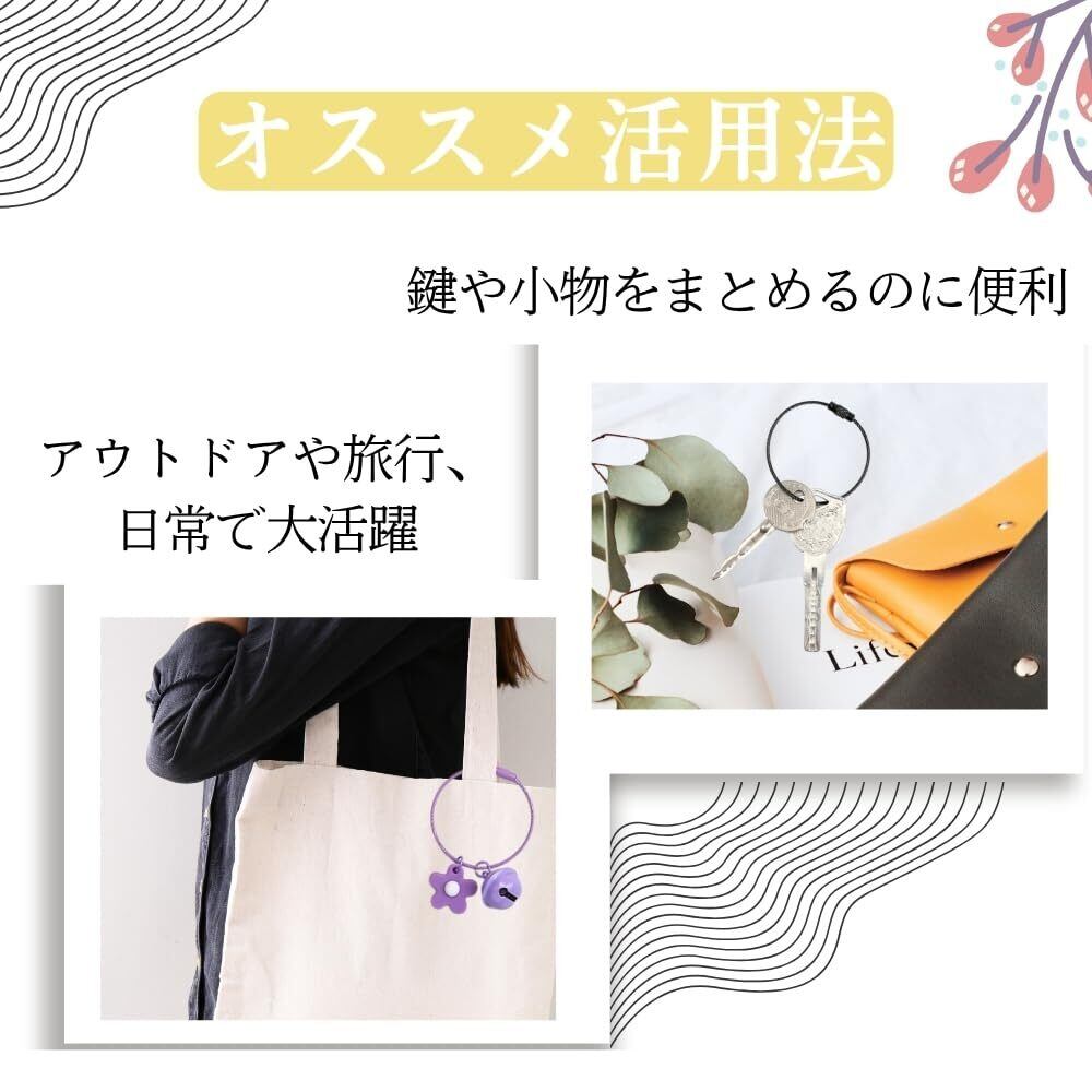 【着脱簡単】ねじ式ワイヤーキーリングは、簡単に着脱できる便利な仕様で、鍵やアクセサリーをしっかり固定します。工具不要で、使い勝手と耐久性を兼ね備えたキーチェーンとして幅広く利用できます。
