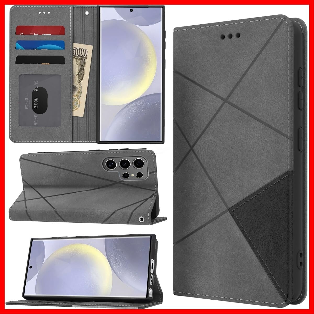 Galaxy S23 Ultra ケース 手帳型 財布型 耐衝撃 ギャラクシー S23Ultra スマホケース カード収納 横置き機能 SC-52D SCG20 携帯カバー 横置きスタンド機能付 ラップホール付き マグネット内蔵 擦り傷防止 肌感レザー 防水 耐摩擦 ファッション (グレー)
