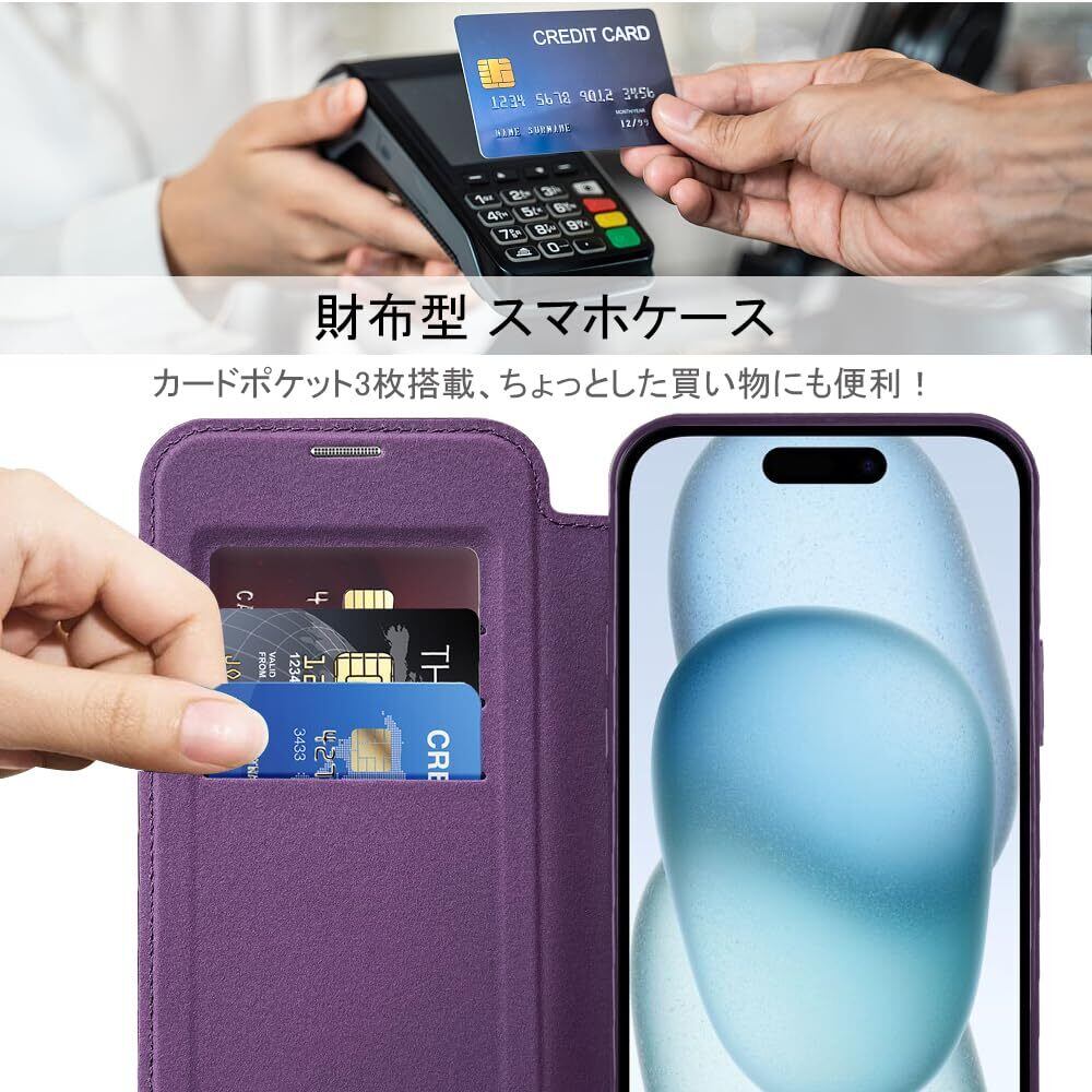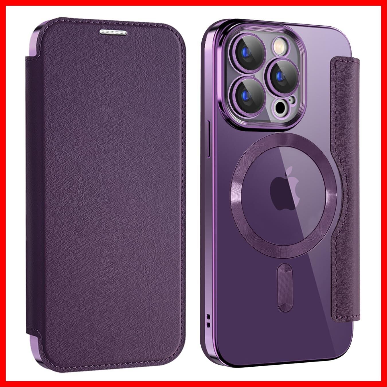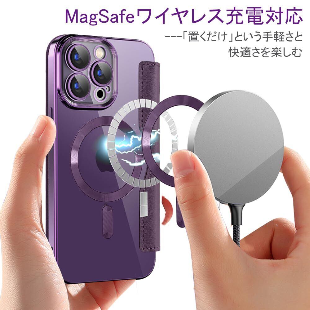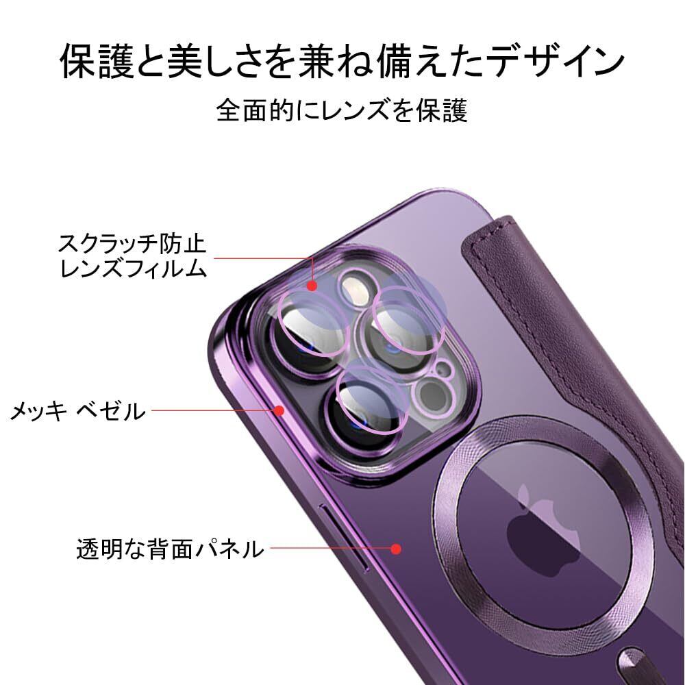 【REHOOF】iPhone 14 pro ケース 手帳型 magsafe対応 6.1インチ 背面 透明 クリア 財布型 アイフォン 14 プロ ケース マグセーフ 手帳 ワイヤレス充電対応 カード入れ PU革 レザー スマホケース 軽量 薄型 防塵 耐衝撃 全面保護 スマホカバー(パープル)