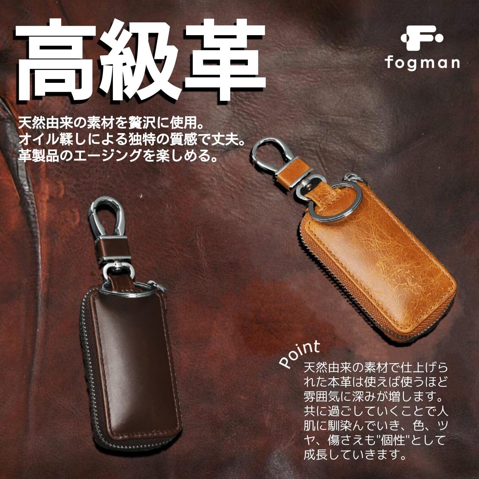 [fogman] キーケース スマートキー 本革 レザー ジャストサイズ チェーンリング 鍵 コンパクト