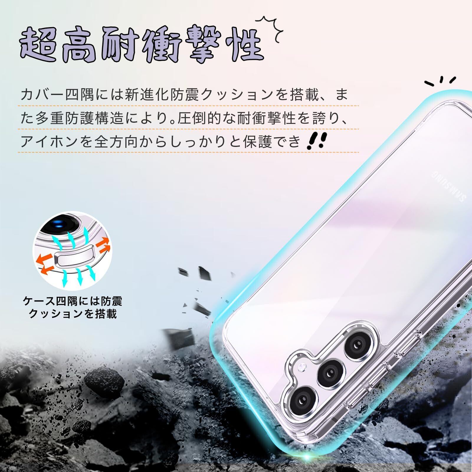【対応機種】Galaxy A55 SC-53E SCG27(6.6インチ用)に適応しています。他のデバイスには対応しておりませんので、ご注文の際はご注意ください。ケース驚きほどの透明感、美しさをしっかりキープ、Phone本体のカラーを活かせて。