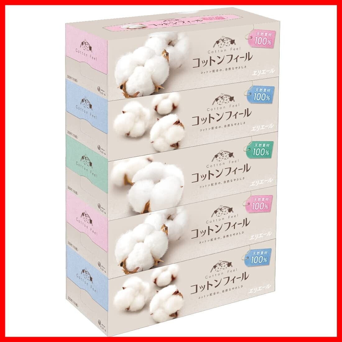 エリエール ティッシュ コットンフィール 150組×5箱 パルプ100%