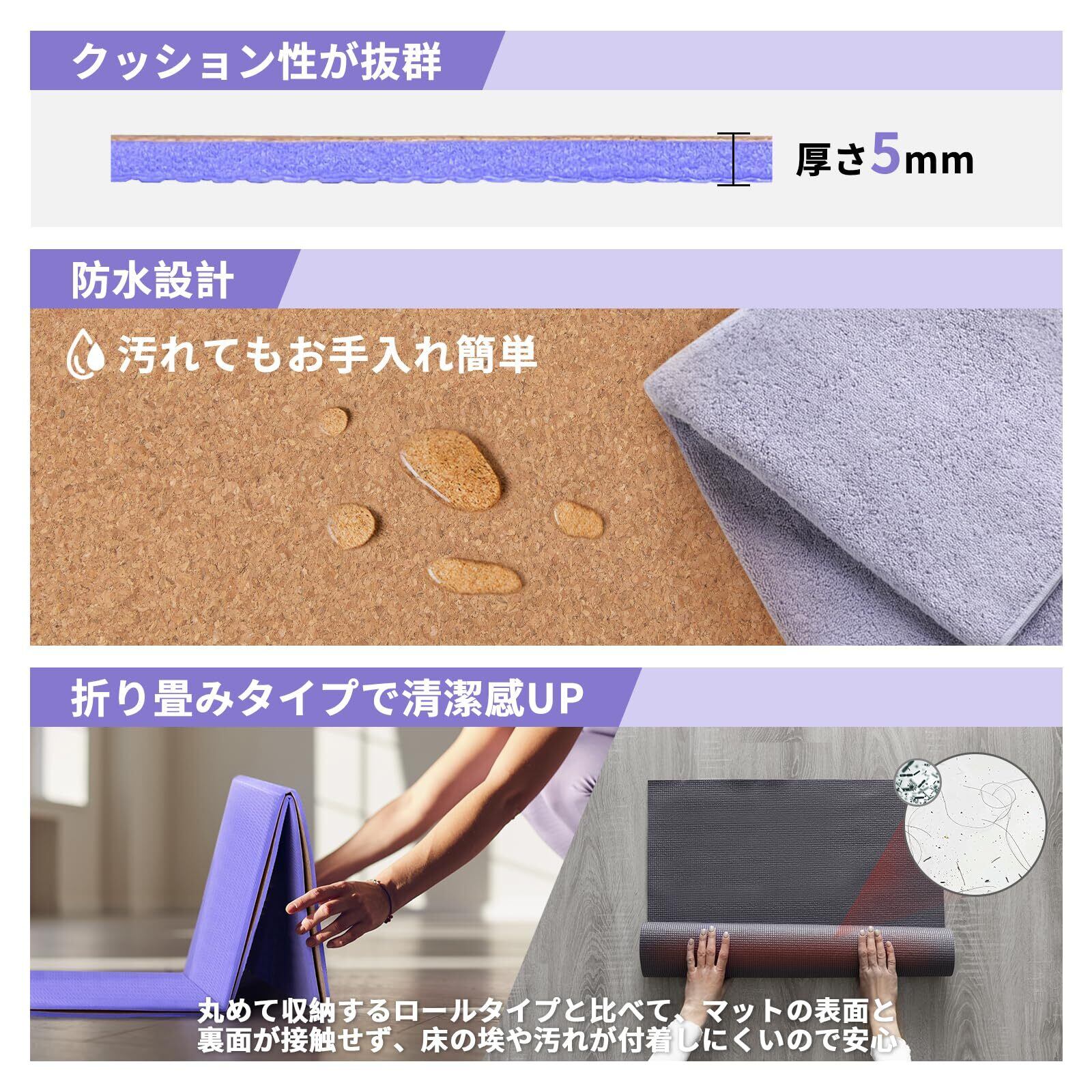 RITFIT 折り畳みヨガマット コルク トレーニングマット 軽量折りたたみ式ヨガマット エクササイズマット TPE素材 厚さ5mm 収納便利 持ち運べる フィットネス ヨガ ピラティス