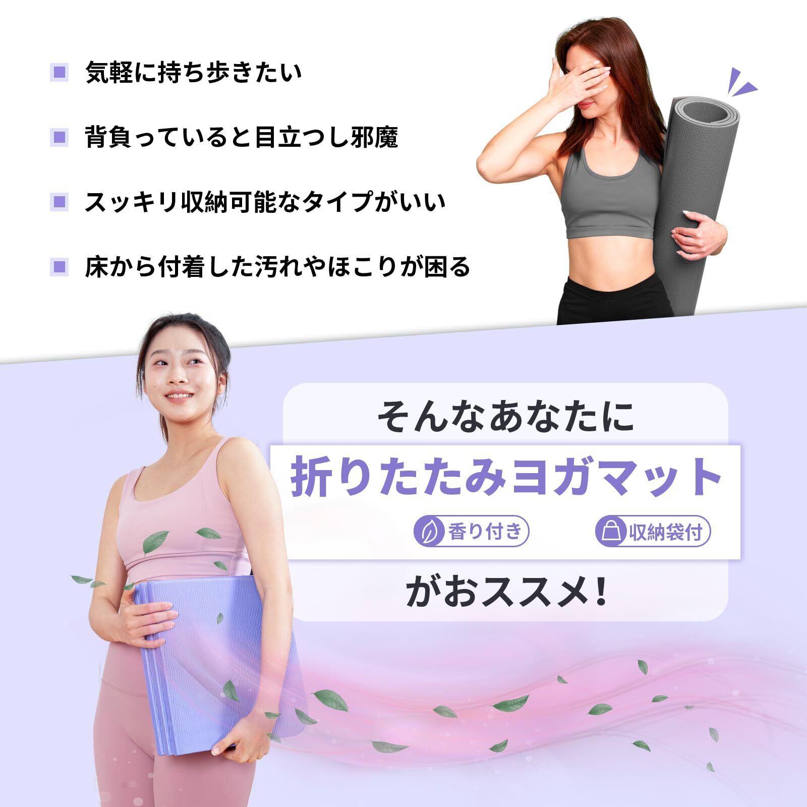 【持ち運び&収納便利】折り目付きで簡単に折り畳める。折り畳むとコンパクトサイズになり、狭い収納スペースにも困りません。鞄やバッグにも収まりやすく、仕事帰りにヨガレッスンにも行きやすい便利なヨガマットです!