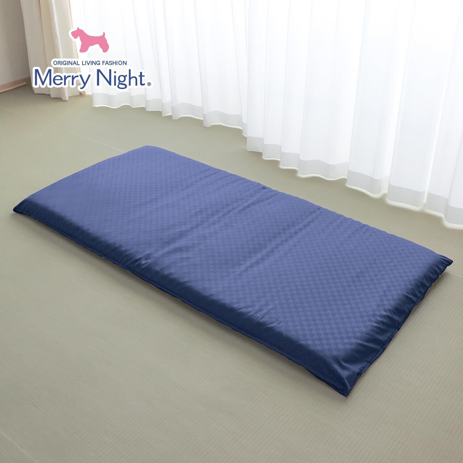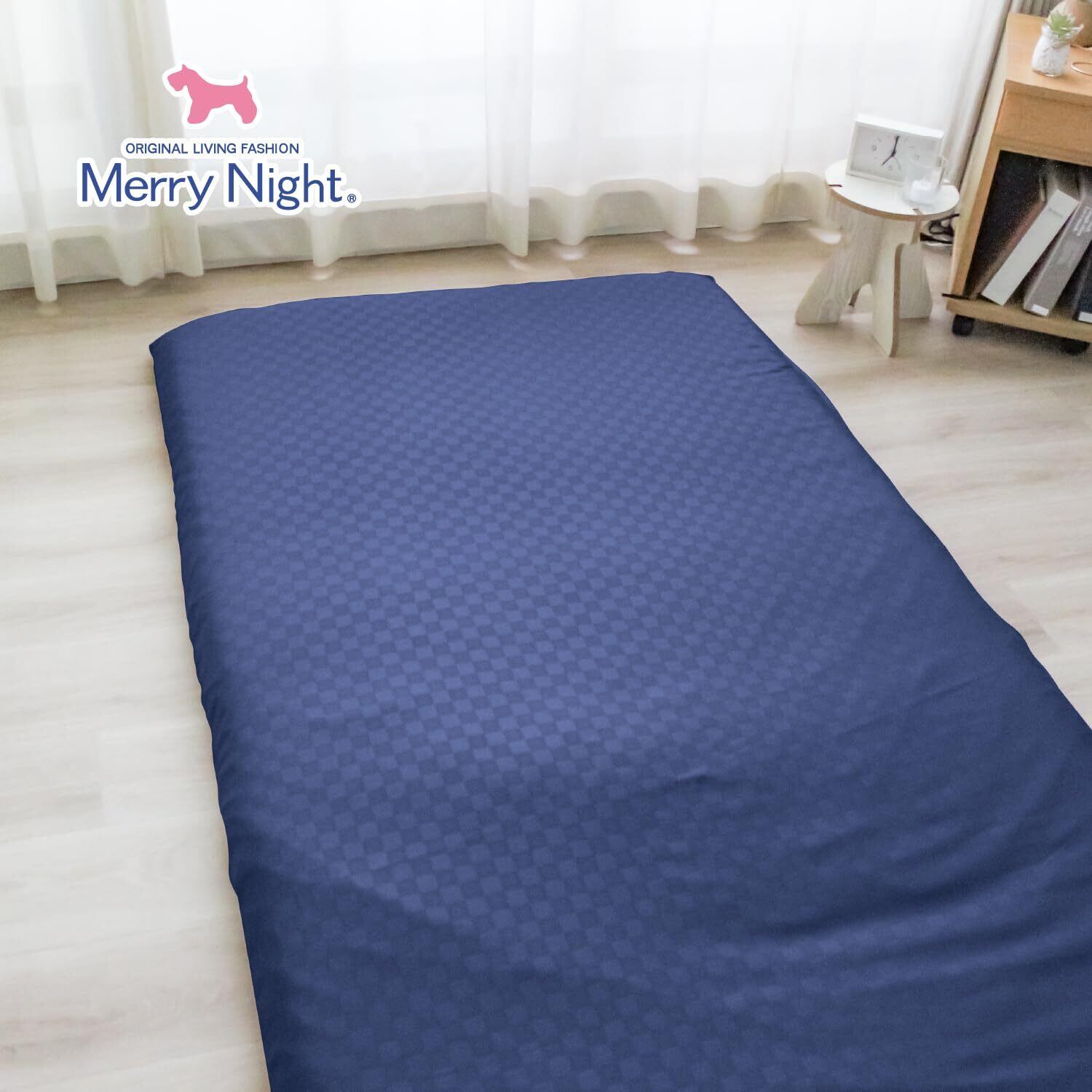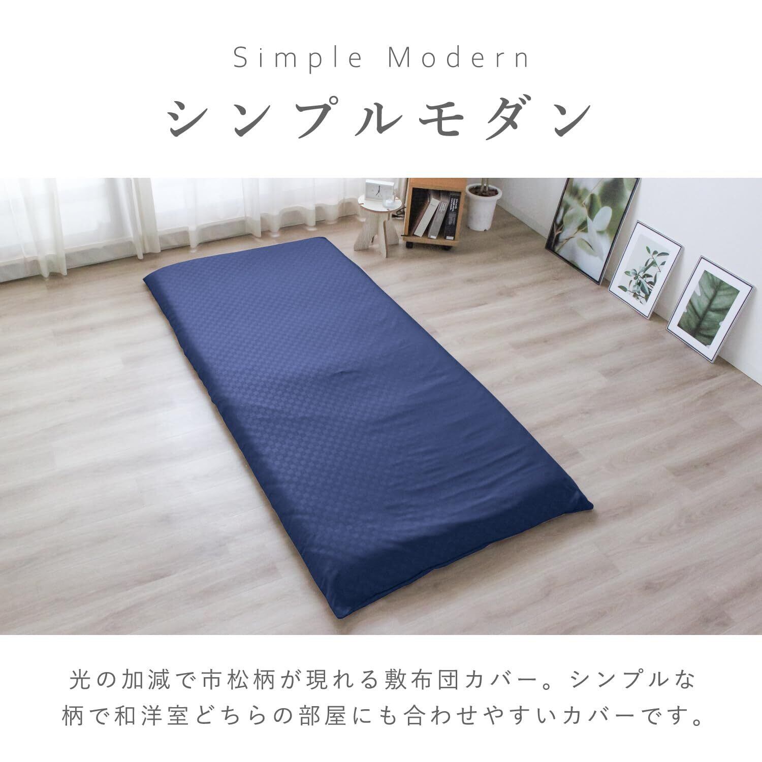 メリーナイト 敷き布団カバー 市松柄 ネイビー シングルロング 約105×215cm 光沢感 和モダン 速乾 シワになりにくい 洗える PE13101-72