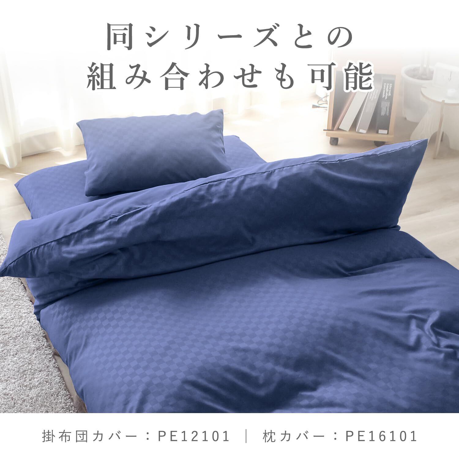 単色だが光の加減で市松柄が現れるモダンテイストの布団カバー。和洋室どちらの部屋にも合わせやすいカラーです。