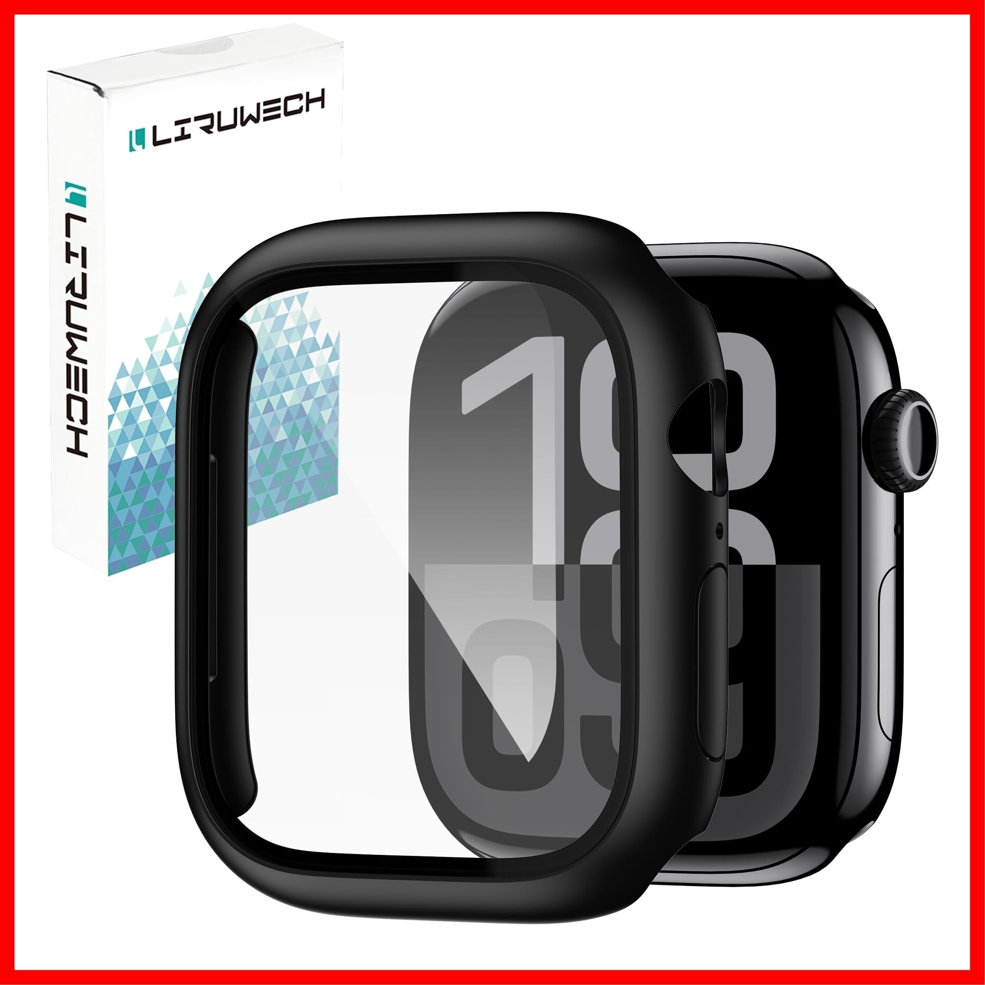 LIRUWECH for Apple Watch 10ケース 42mm アップルウォッチ10保護カバー ガラスフィルム 一体型 アップルウォッチ シリーズ10対応 PC素材 耐衝撃 タッチ感良好 衝撃吸収 防塵 Apple Watch 10アクセサリー Apple Watch 10 case 全面保護 高透過率 指紋防止 (42mm,ブラック)