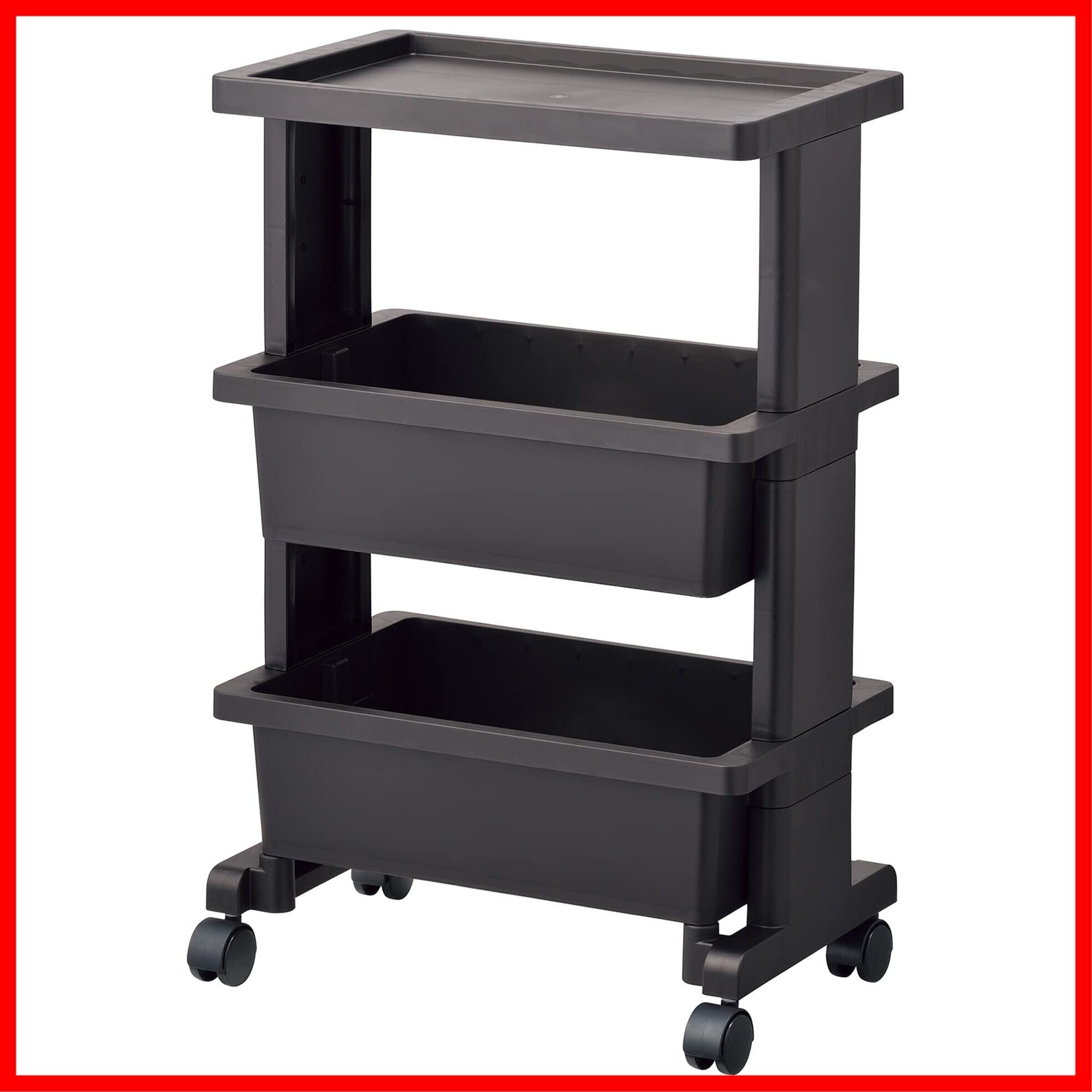 JEJアステージ(JEJ Astage) リセ テーブルワゴンミニ 日本製 組立式 3段 キャスター付 ブラック 幅40×奥行25×高さ62.5cm
