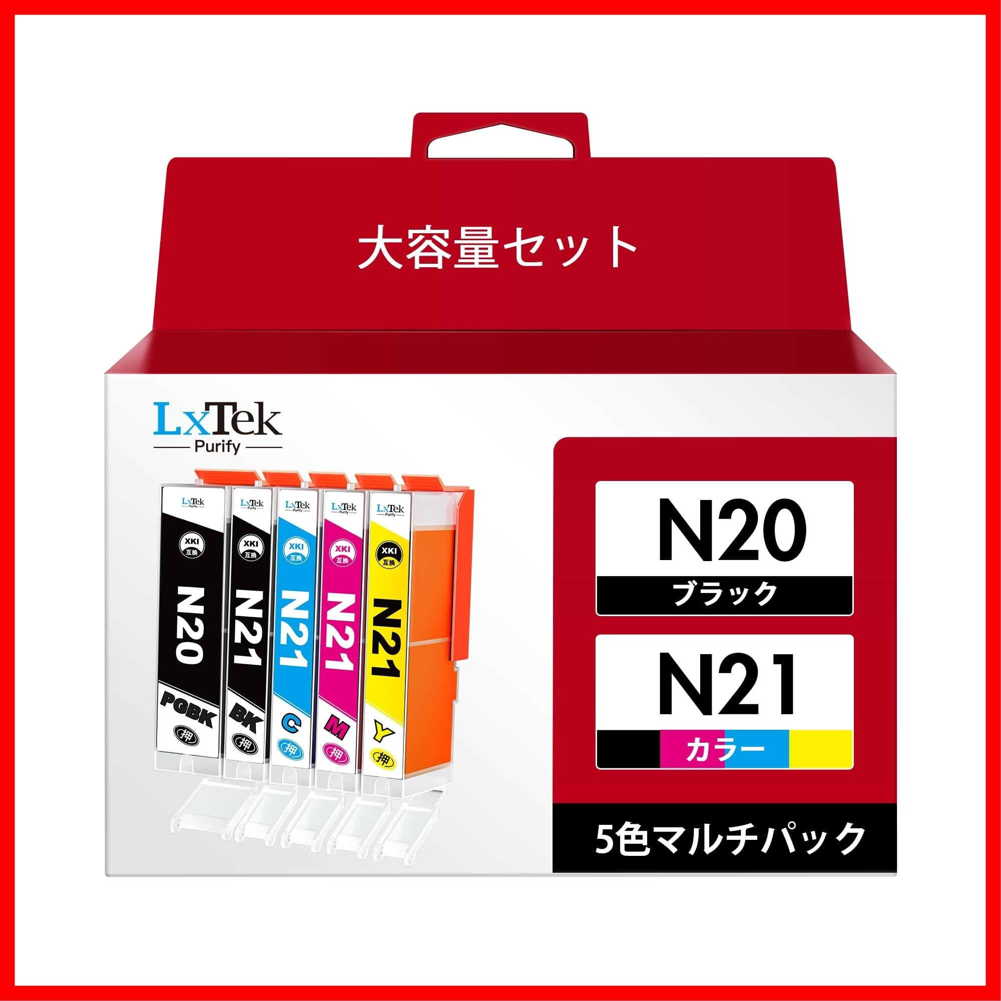 LxTek Purify XKI-N21(BK/C/M/Y)+N20 5色マルチパック 互換インクカートリッジ キヤノン用 XKI-N21+N20/5MP 対応機種:PIXUS XK100 XK110 XK120 XK130 XK500 | hananoki