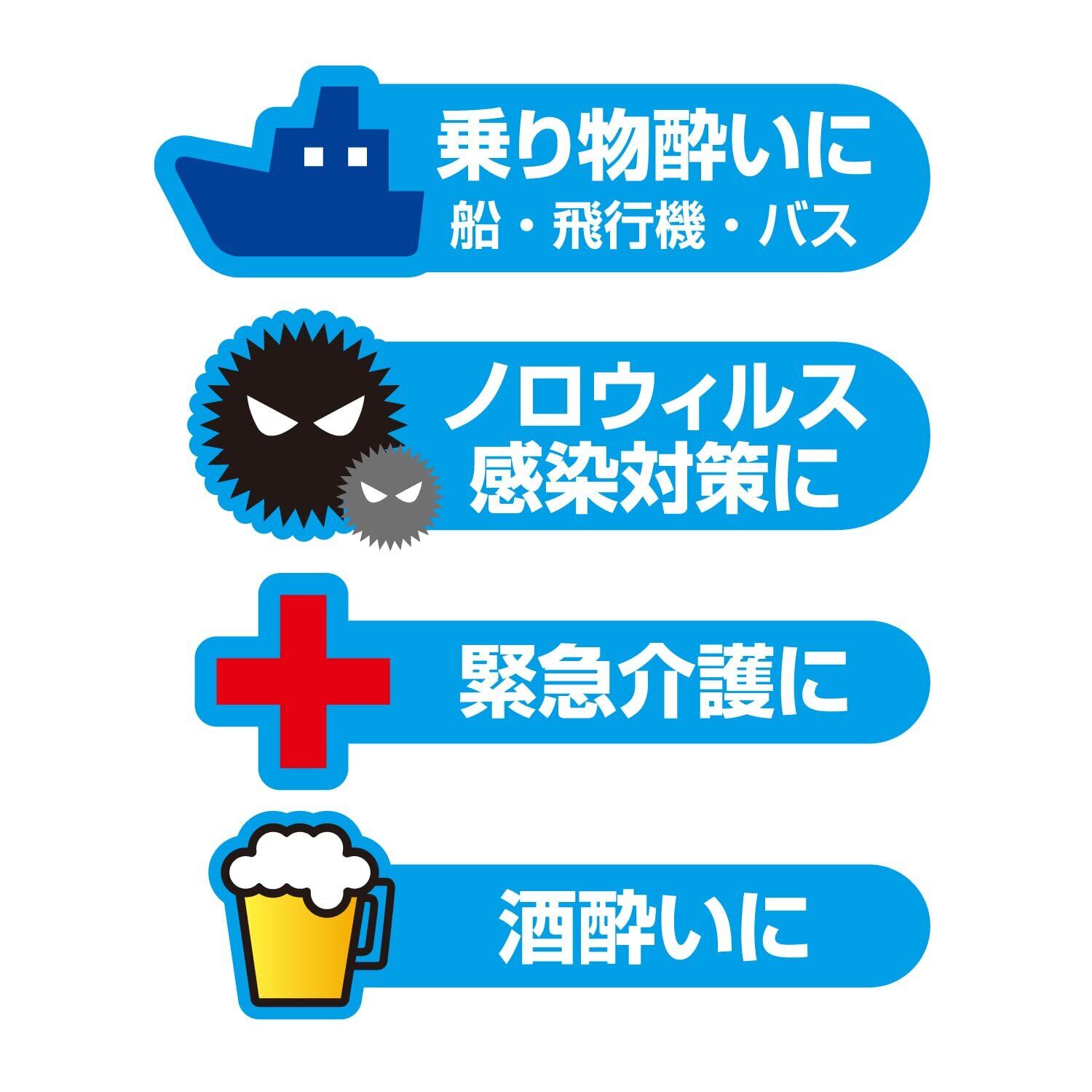 乗り物酔いやノロウィルス感染対策に、嘔吐物を固めてニオイをガードする携帯エチケット袋(Z80)の4枚入り5個セット。携帯トイレとしても使用可能です。