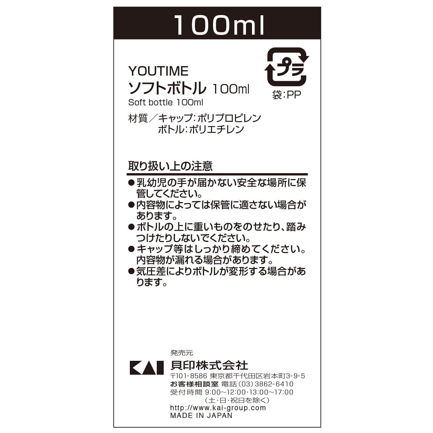 貝印(Kai Corporation) ソフトボトル 100ml ボトル 化粧ボトル ぼとる 透明 容器 旅行 トラベル YOU TIME (シャンプー・リンス等の使用に) 1個