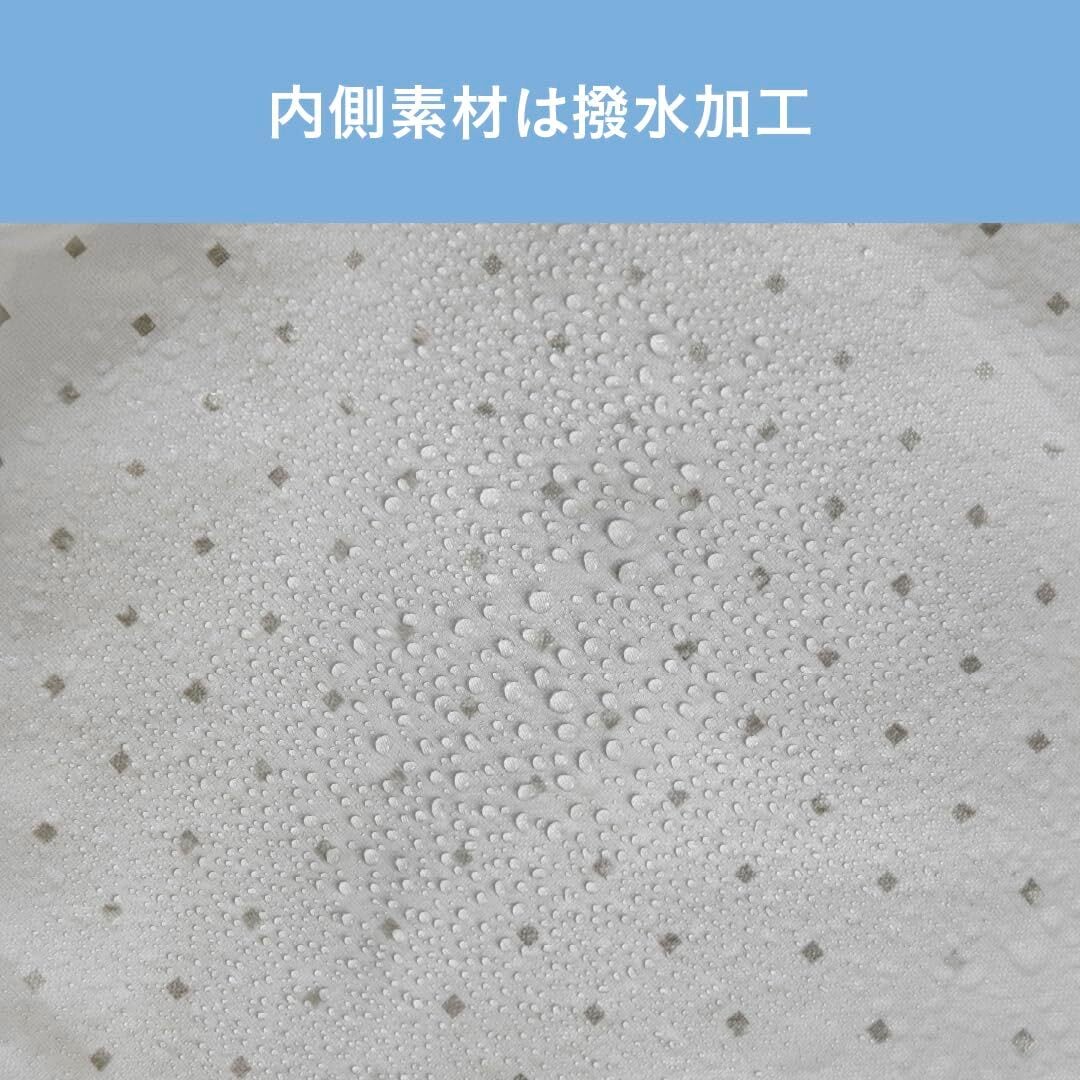 内側の素材は撥水加工されているので汚れにくく、保冷効果もあるので、夏の暑い日も安心です。