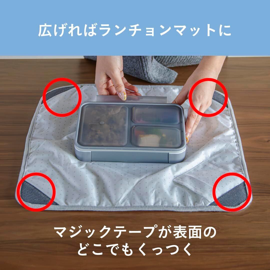 色々な弁当箱をしっかり包める、お弁当箱用多機能ラッピングシート「ランチラッパー」下に敷けばランチョンマットになったり、保冷剤や調味料を入れるポケットが付いていたり、たくさんの機能を兼ね備えています。