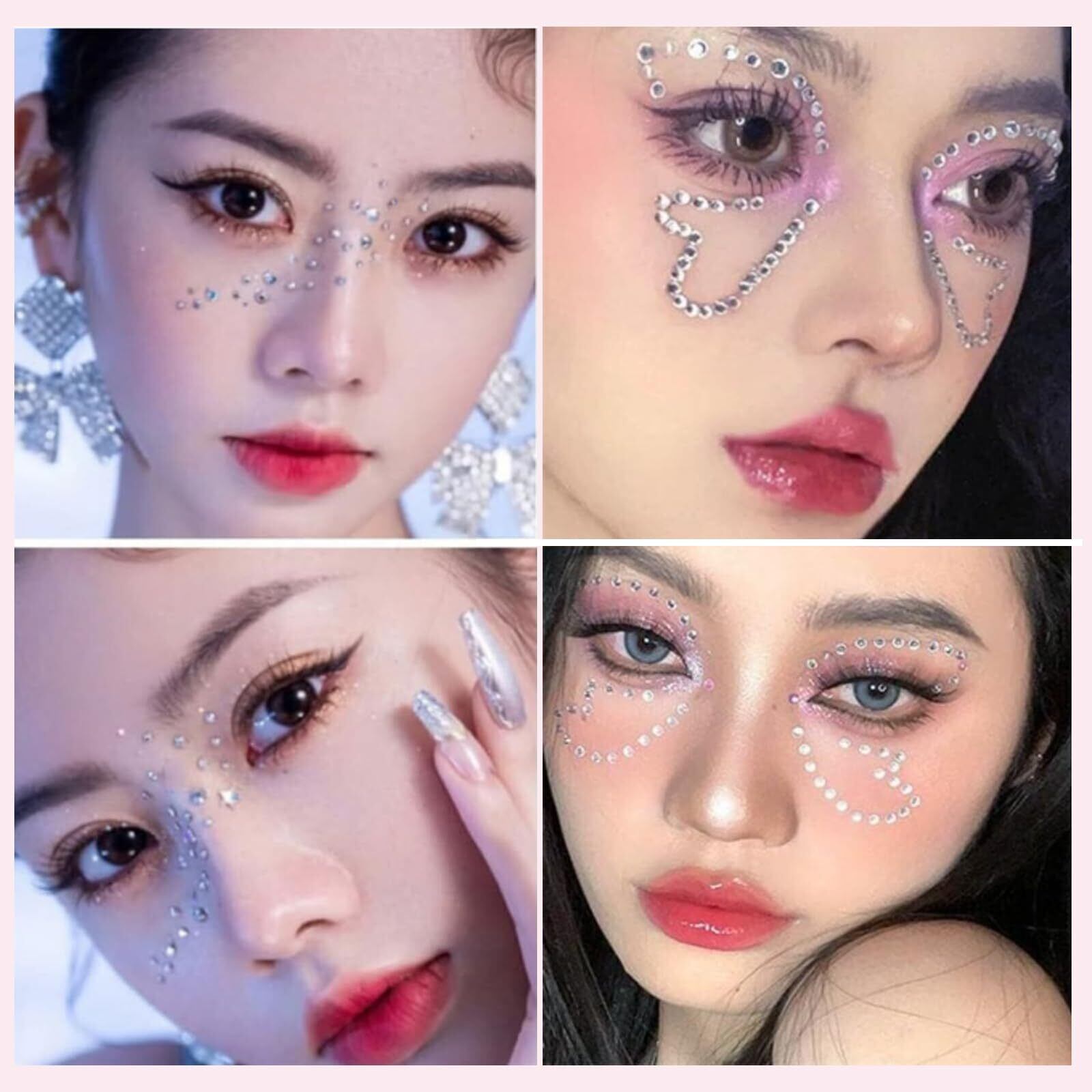 DIY用品: キラキラメイクアップステッカー、アクリル素材で作られ、耐久性があり実用的です。デザインによってはDIY工芸品やジュエリーなどにもご使用いただけます。衣服、携帯電話、ネイルアートアクセサリー、バッグ、グリーティングカードの作成などにも非常に適しており、あなたの生活に彩りと創造性を加えます